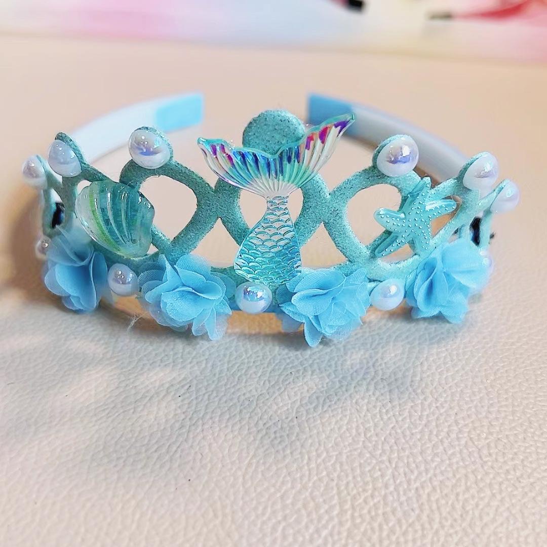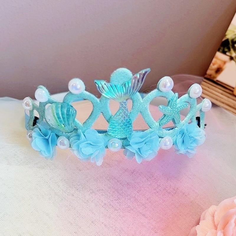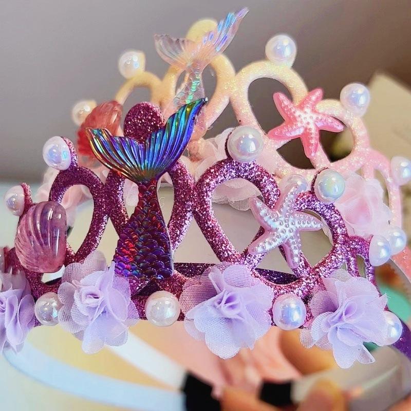 Nova Tiara Coroa Redonda Princesa Sereia Infantil Tiara Colorida Sereia Pérola Infantil
