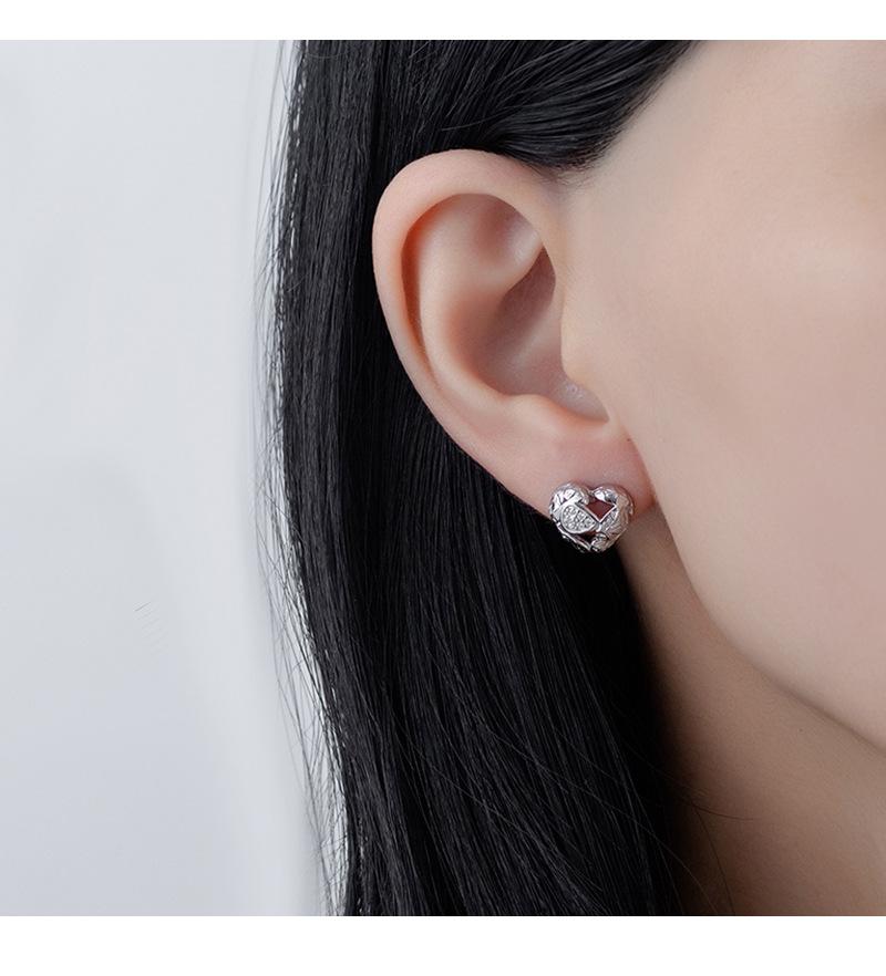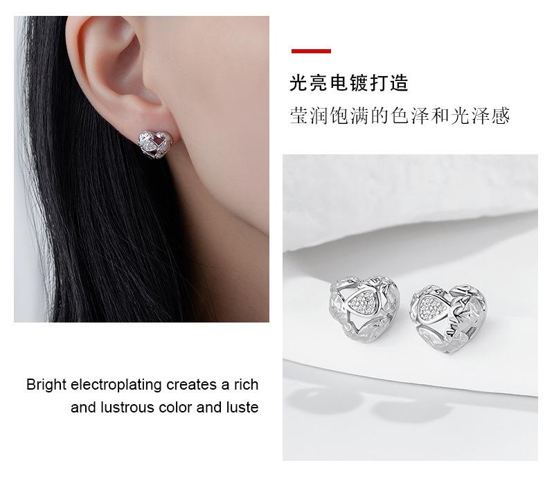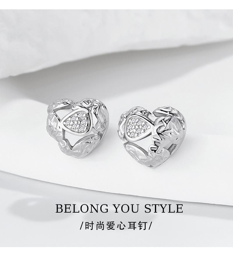 Compre Brincos de Prata de Lei S925 Estilo Coreano Padrão Rock Brincos em Forma de Coração para Mulheres Nicho Simples Elegantes Brincos de Prata Es3251 no atacado no Joom.pro