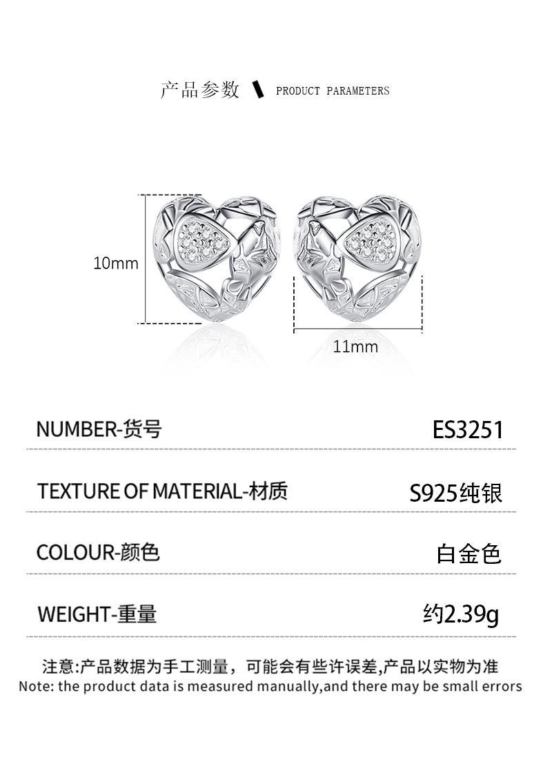 Brincos de Prata de Lei S925 Estilo Coreano Padrão Rock Brincos em Forma de Coração para Mulheres Nicho Simples Elegantes Brincos de Prata Es3251