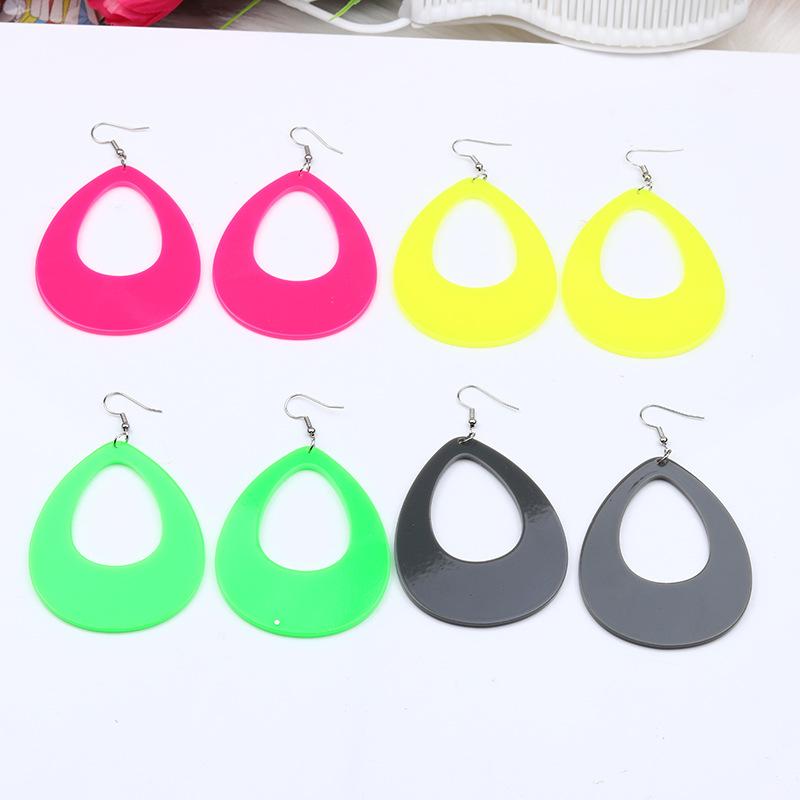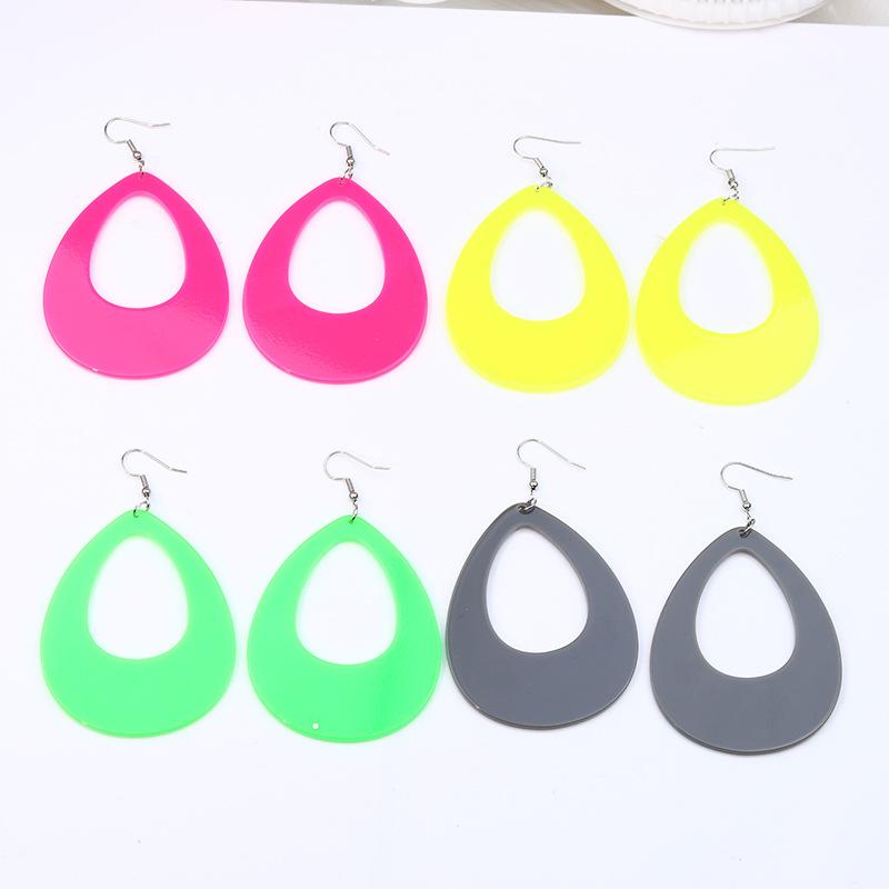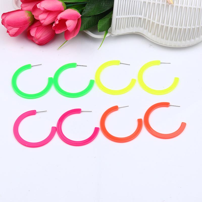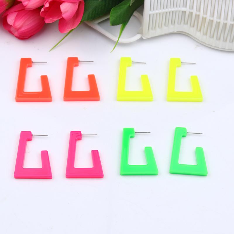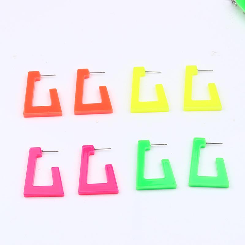 Conjunto de quatro peças da Amazon, brincos pendentes em forma de C, cor fluorescente, moda simples, personalidade, brincos em L, acessórios para orelha, mulheres