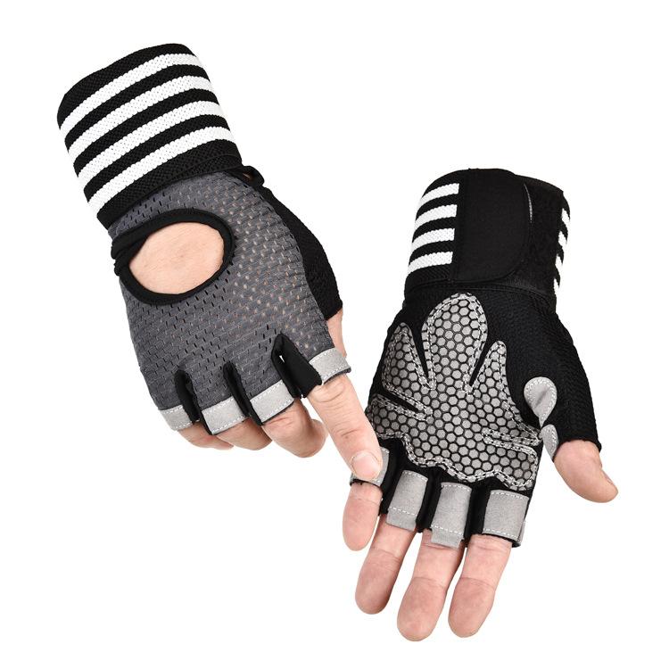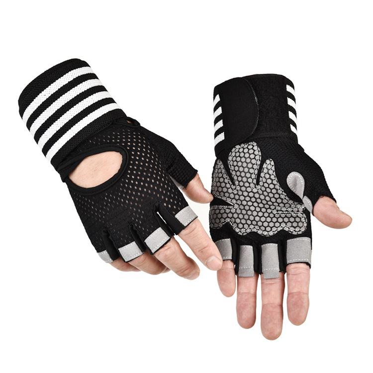 Luvas de fitness equipamentos de treinamento homens e mulheres pulso estendido antiderrapante respirável resistente ao desgaste meio dedo luvas esportivas ao ar livre atacado
