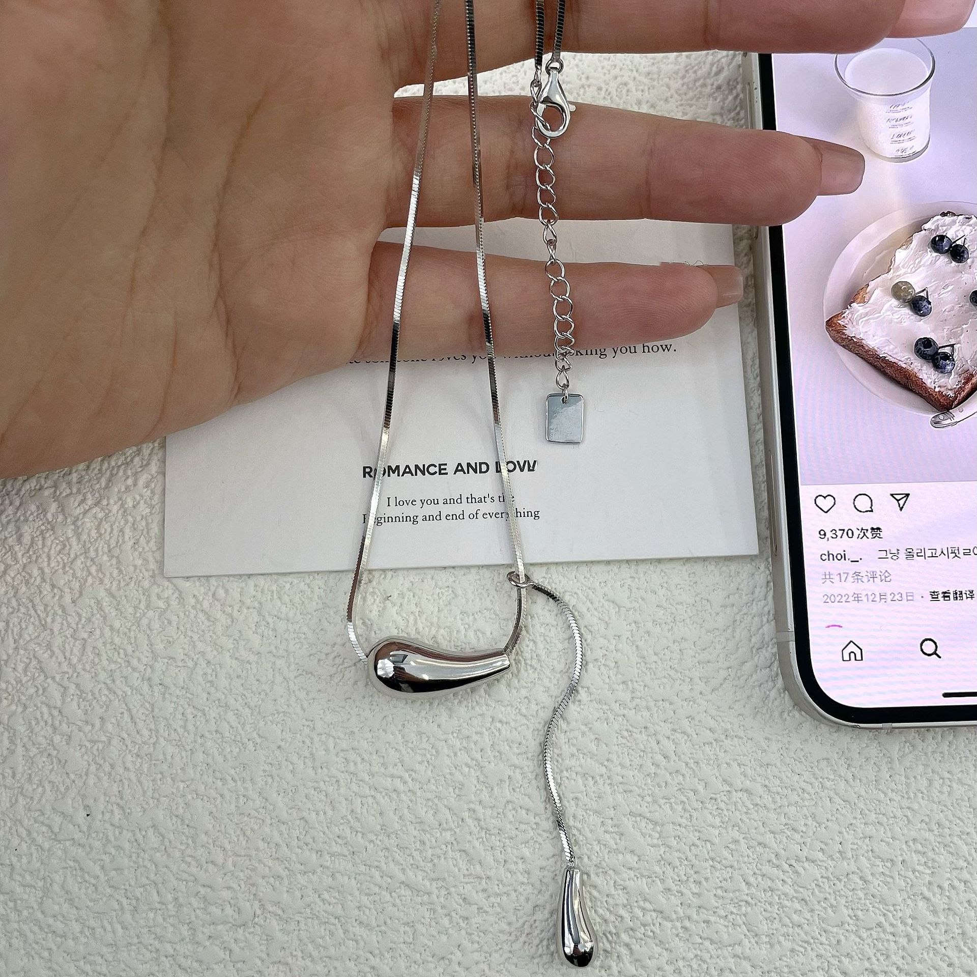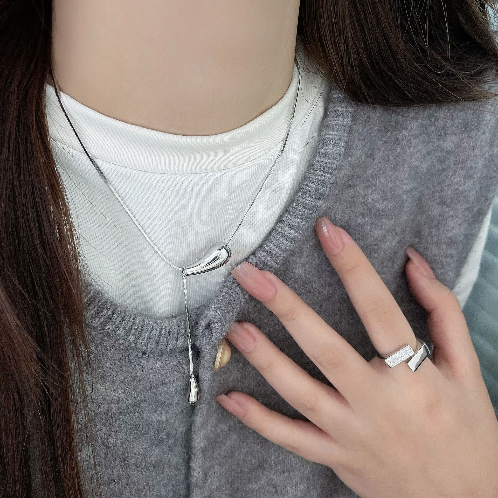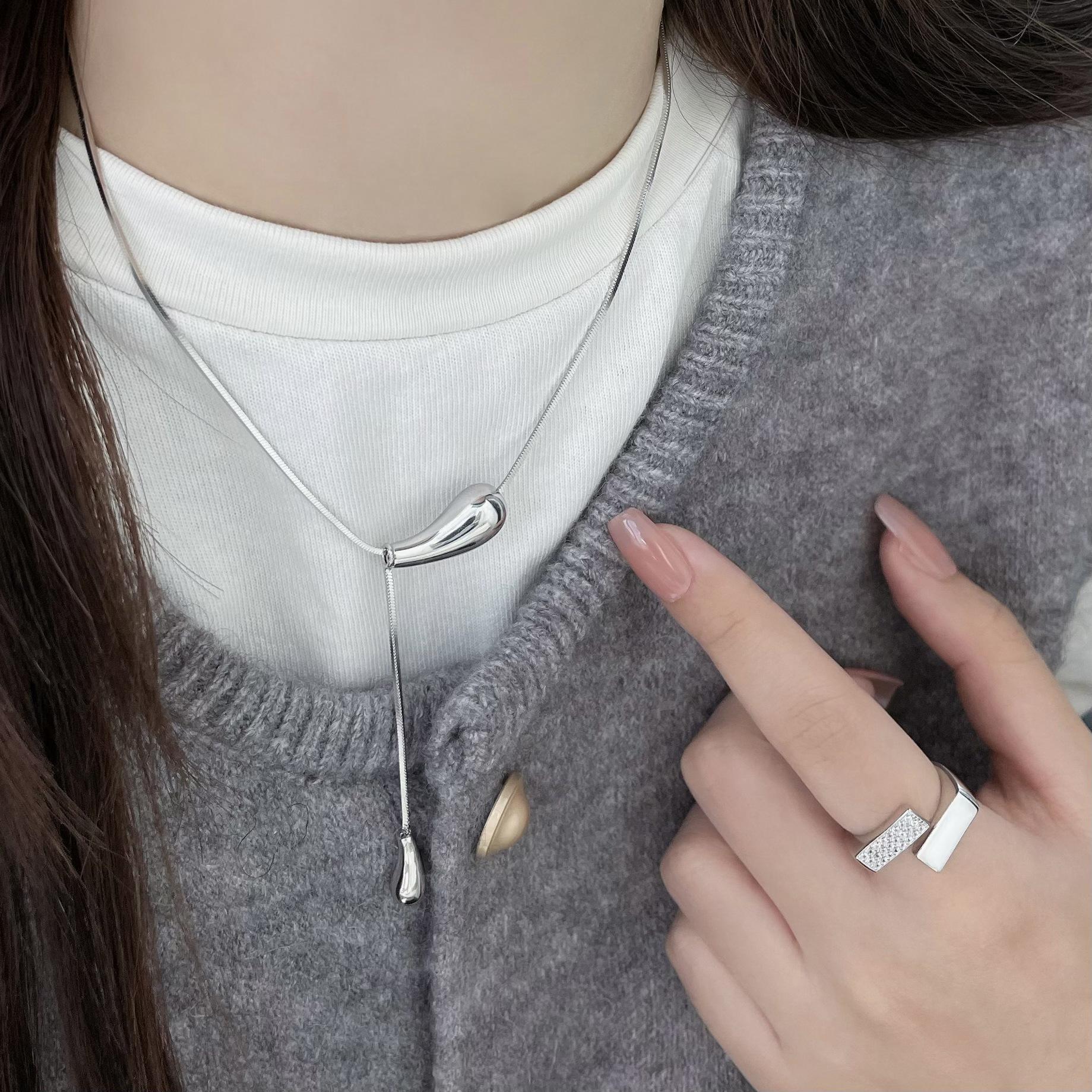 Compre S925 Sterling Silver Gota De Água Pingente De Lã Cadeia De Lã De Luxo Nicho Cadeia De Pescoço High-end Colar Acessórios Mulheres no atacado no Joom.pro