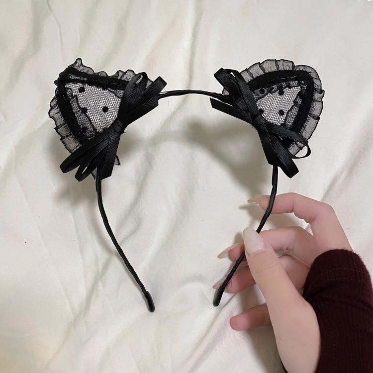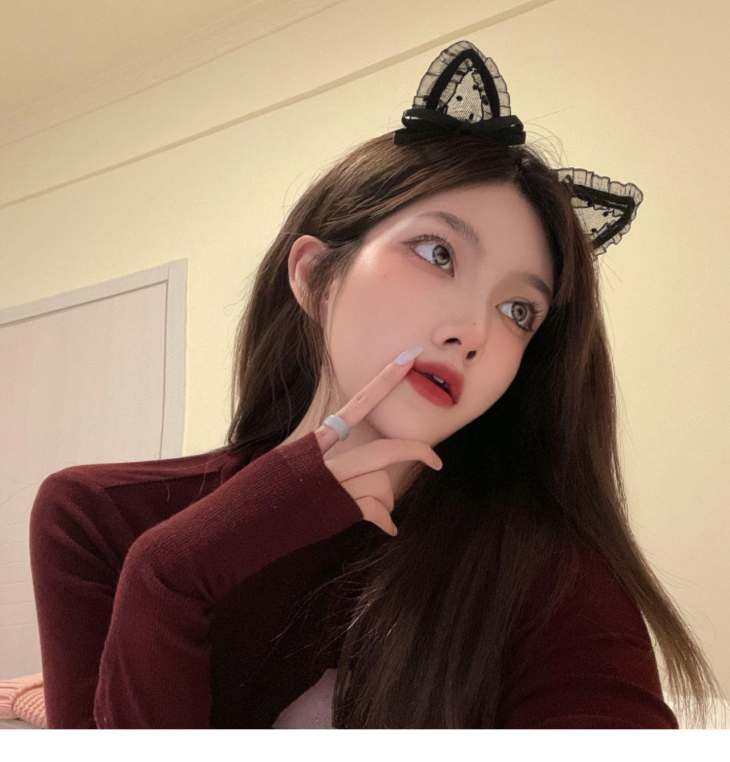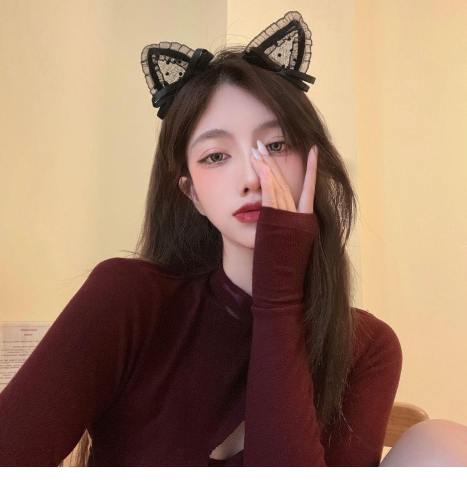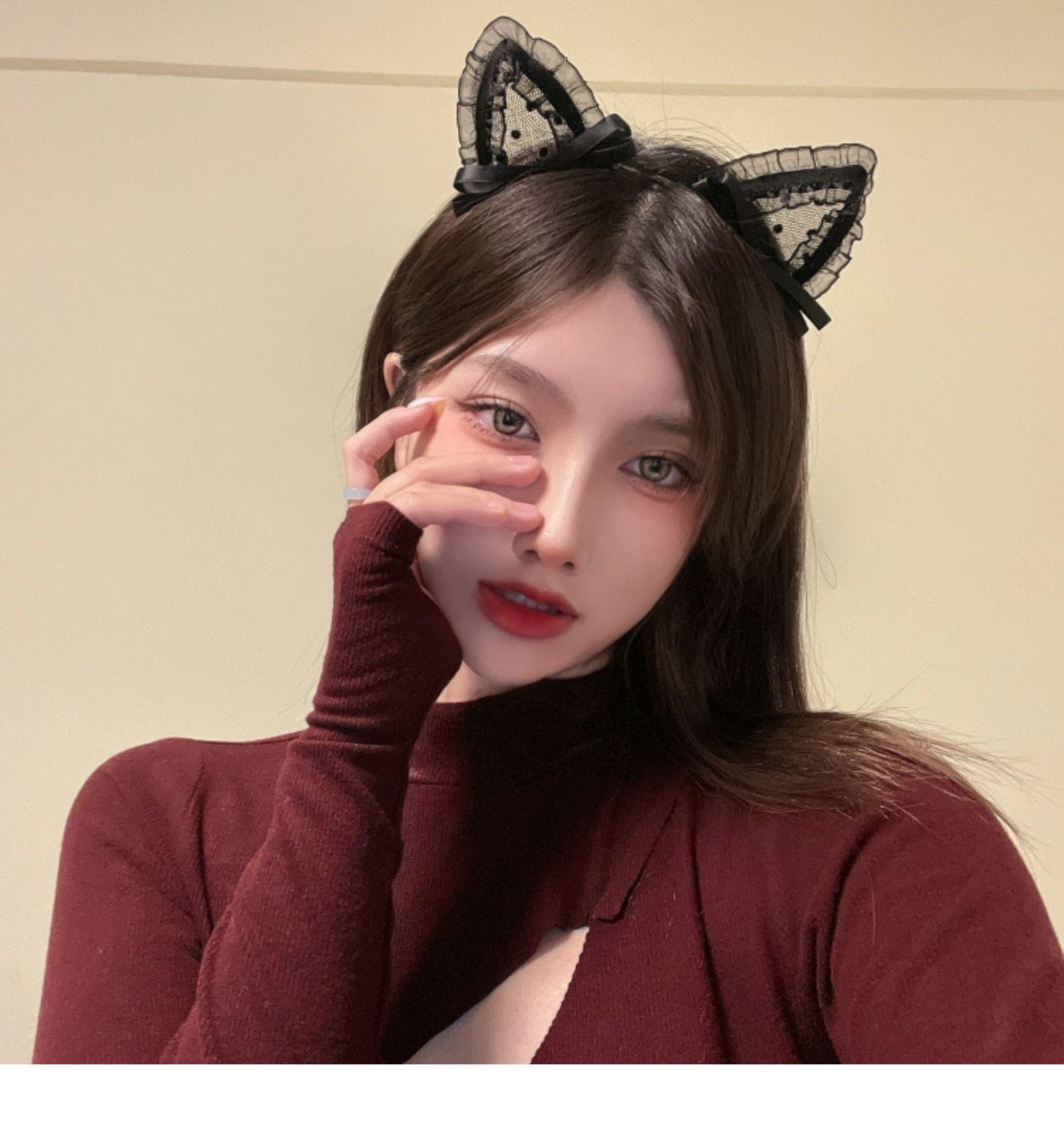 Lace hairpin bonito orelhas de gato headband feminino arco alto sentido empregada hairpin headband cabeça acessórios Halloween