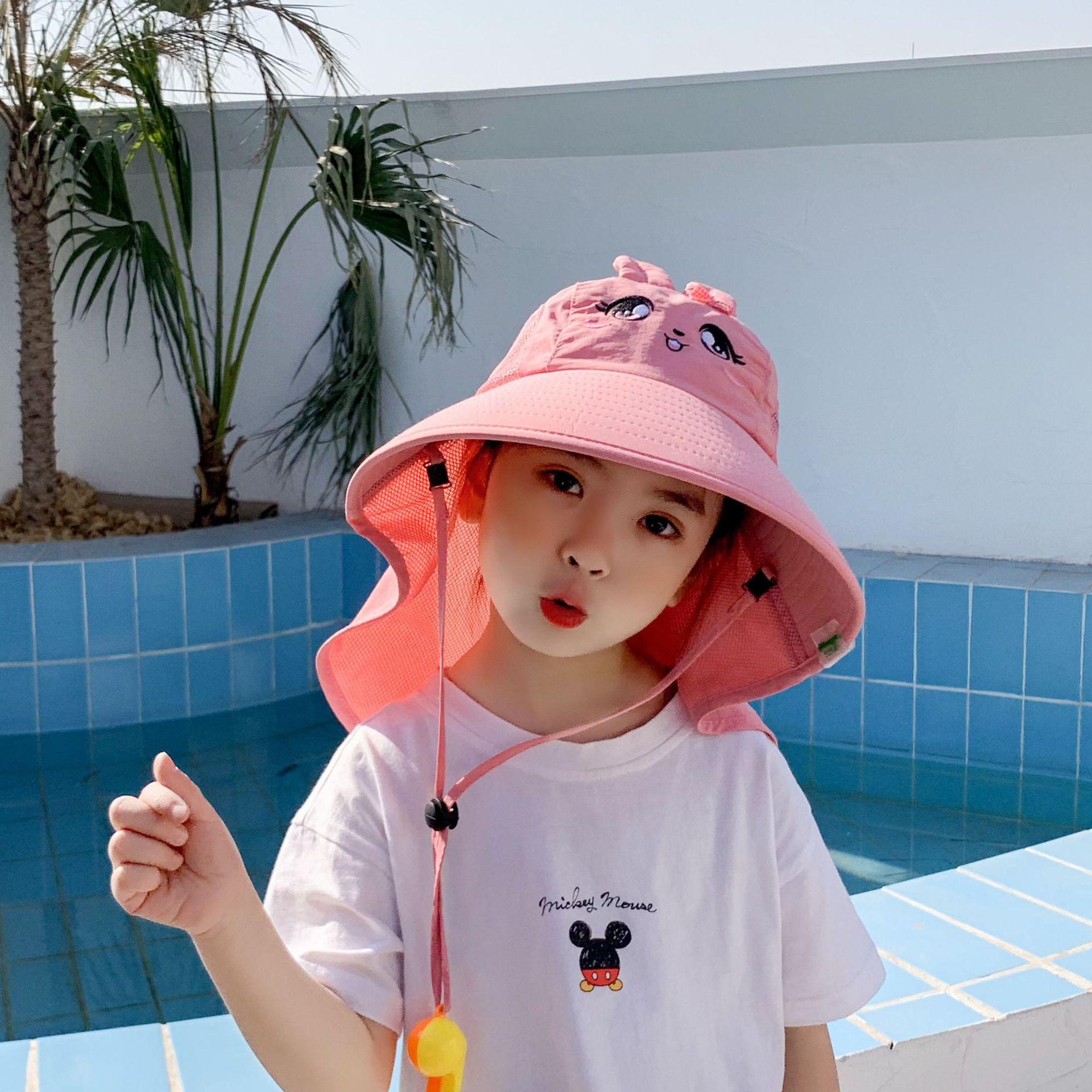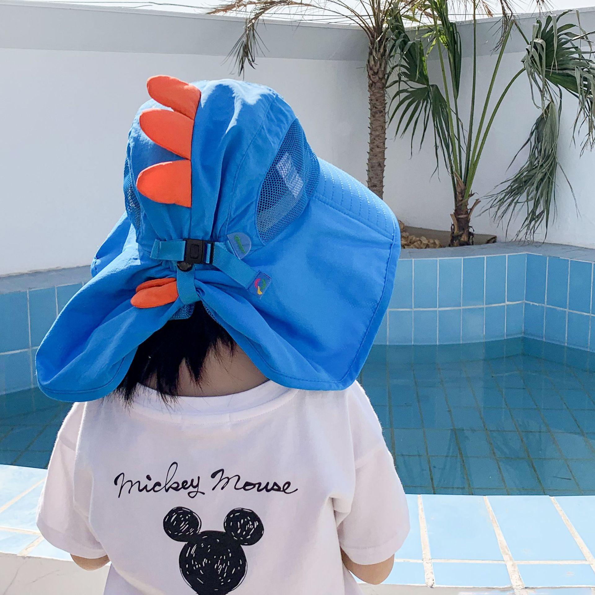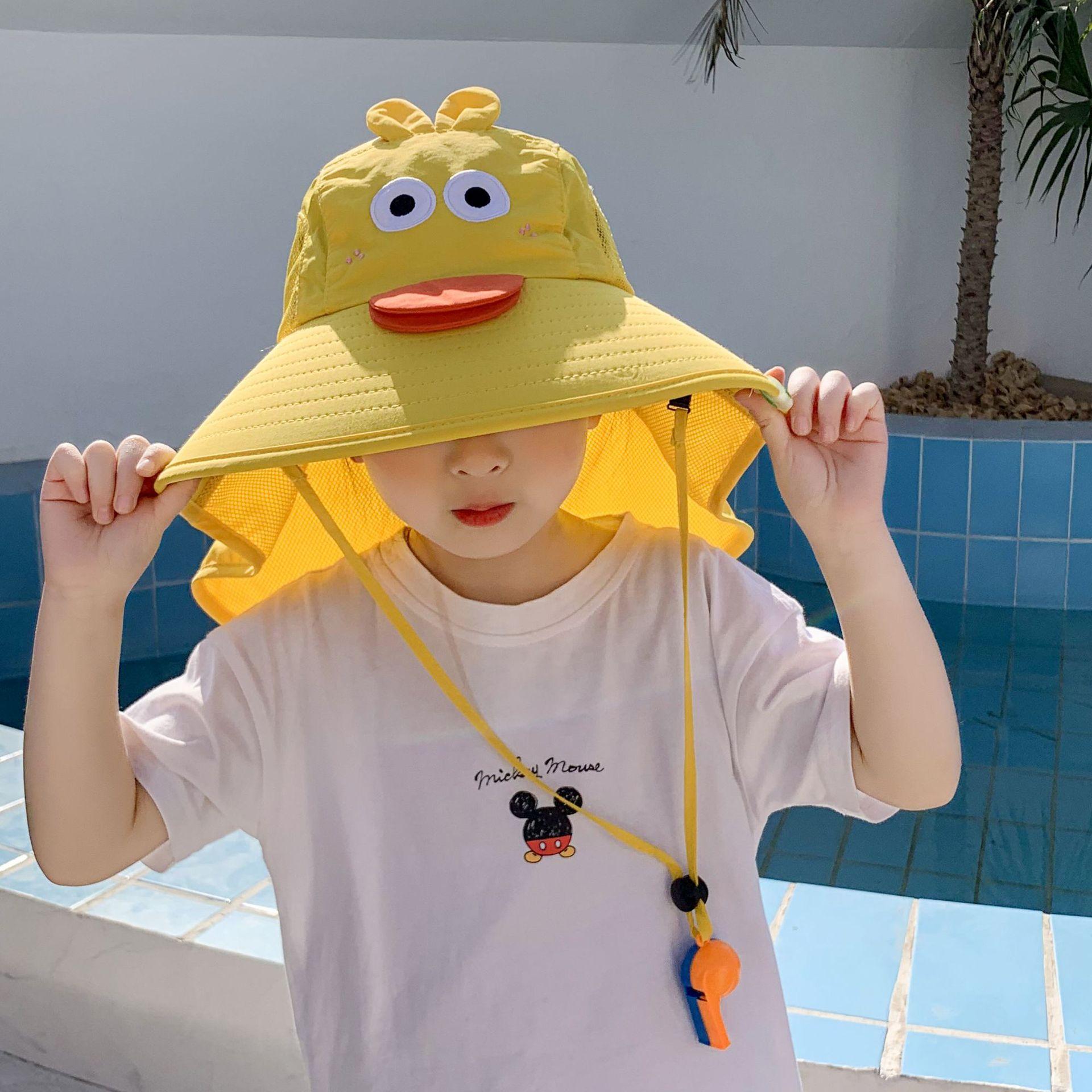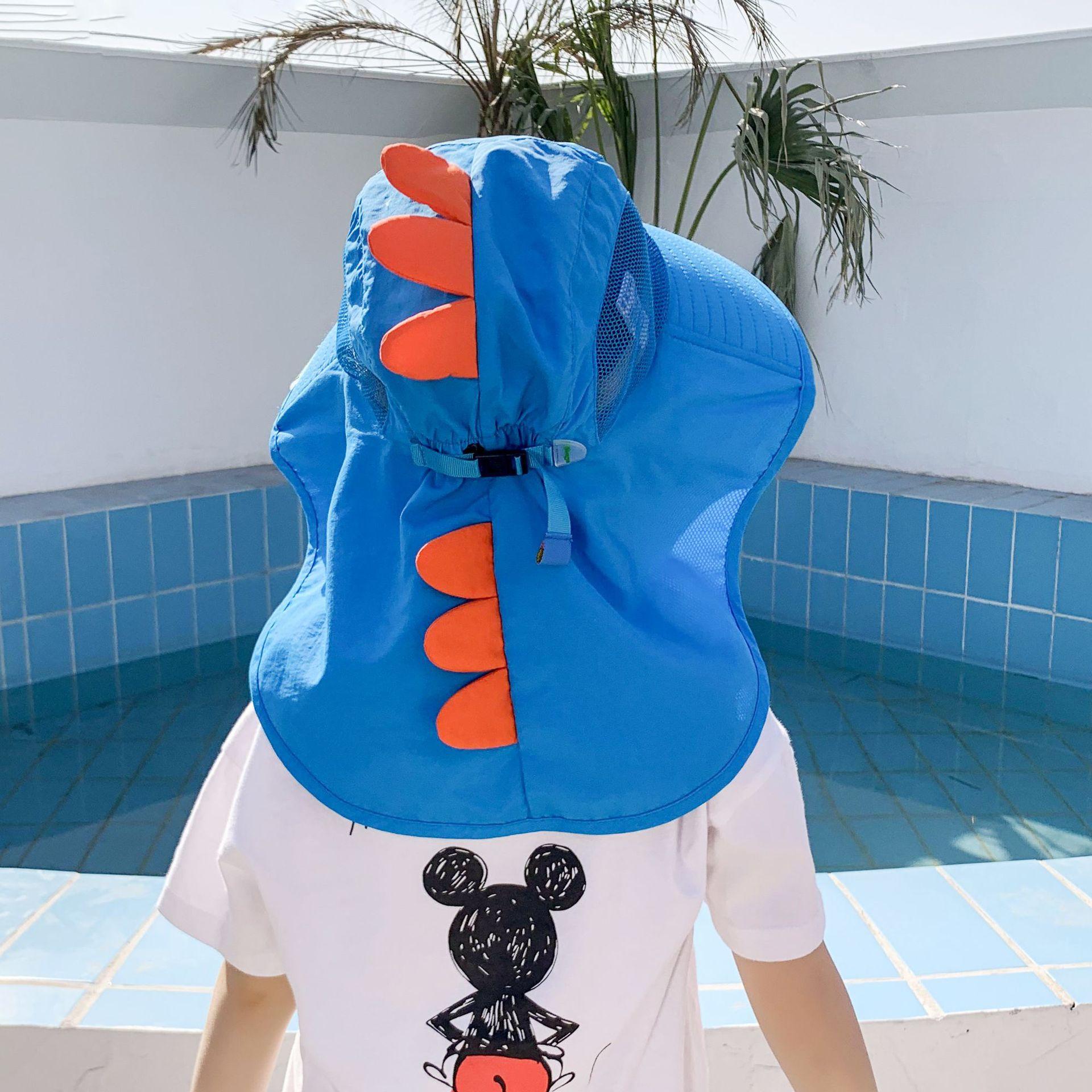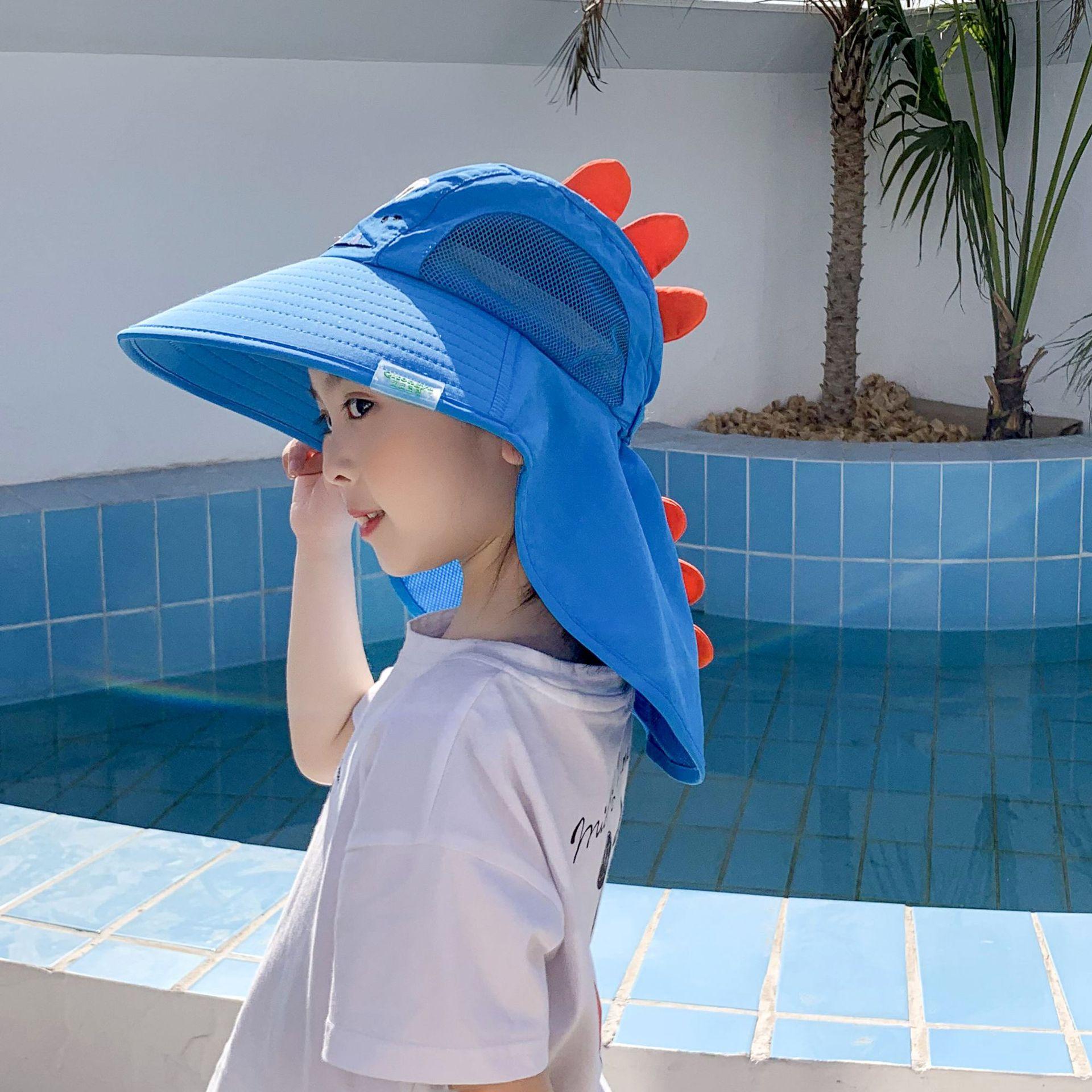 Verão Chapéu Protetor Solar Infantil Big Brim Pescador Chapéu Bonito Dinossauro Protetor Solar Chapéu com Apito Atacado