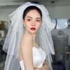 Véu de Noiva Pérola Camada Única Longo com Cauda, Acessório de Cabeça para Vestido de Noiva de Fio Liso Longo e Curto, Fotografia de Viagem de Casamento, Laço Estilo Vintage