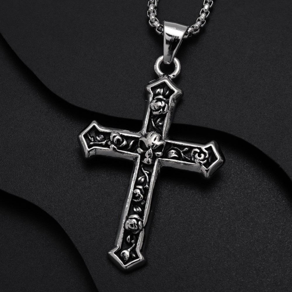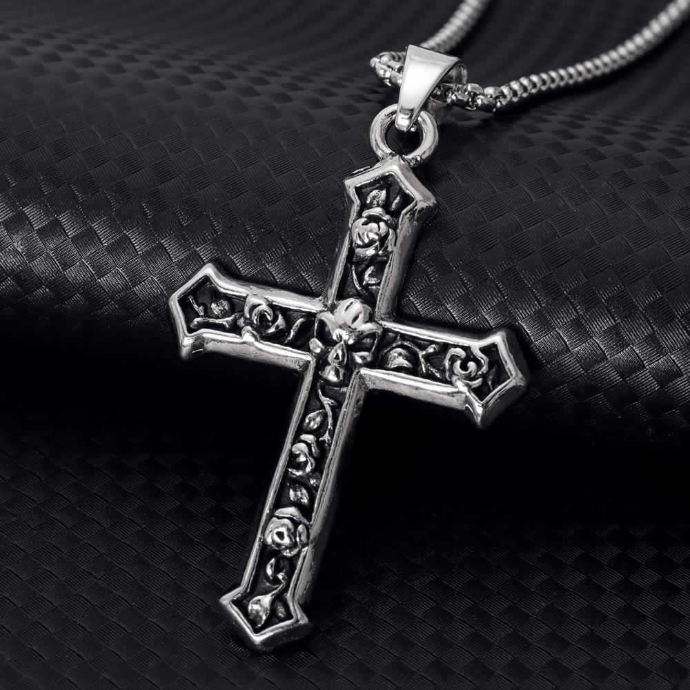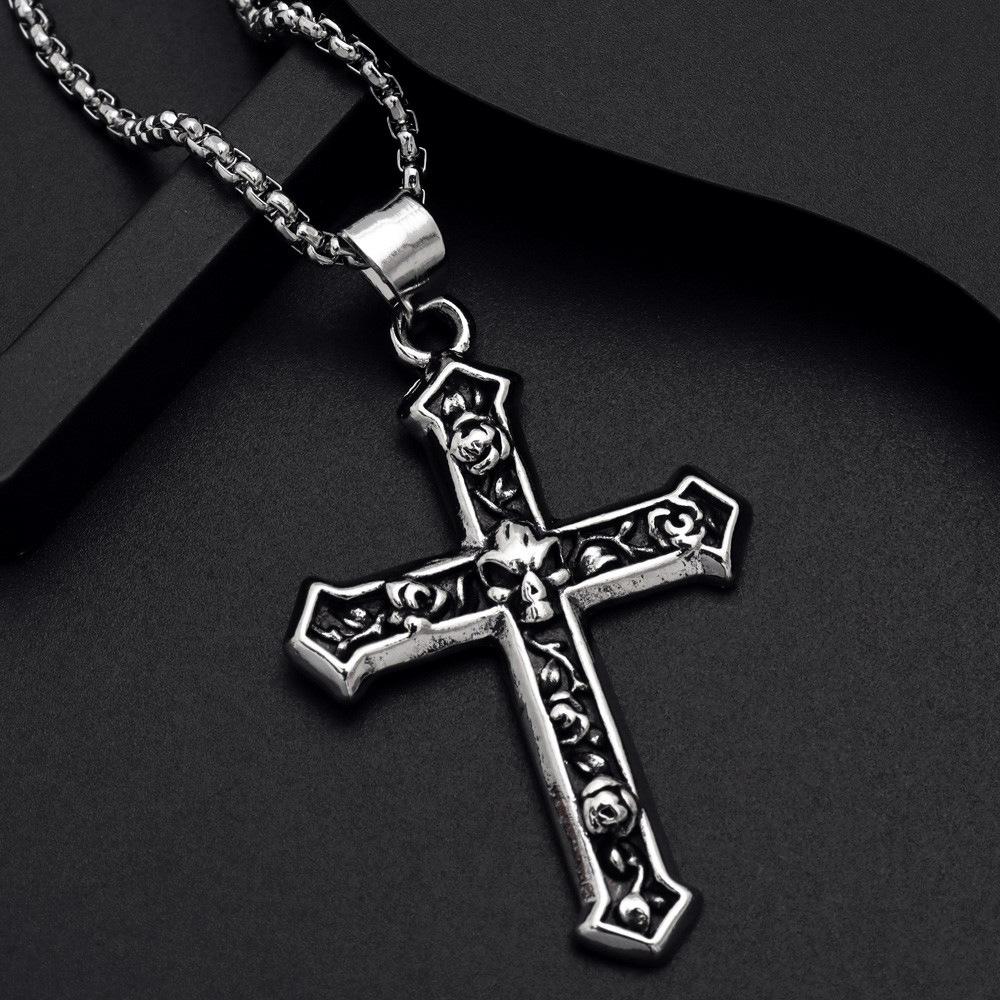 Compre Temu venda quente [com cadeia] personalidade europeia e americana retro angustiado crânio cruz homens colar de pingente no atacado no Joom.pro