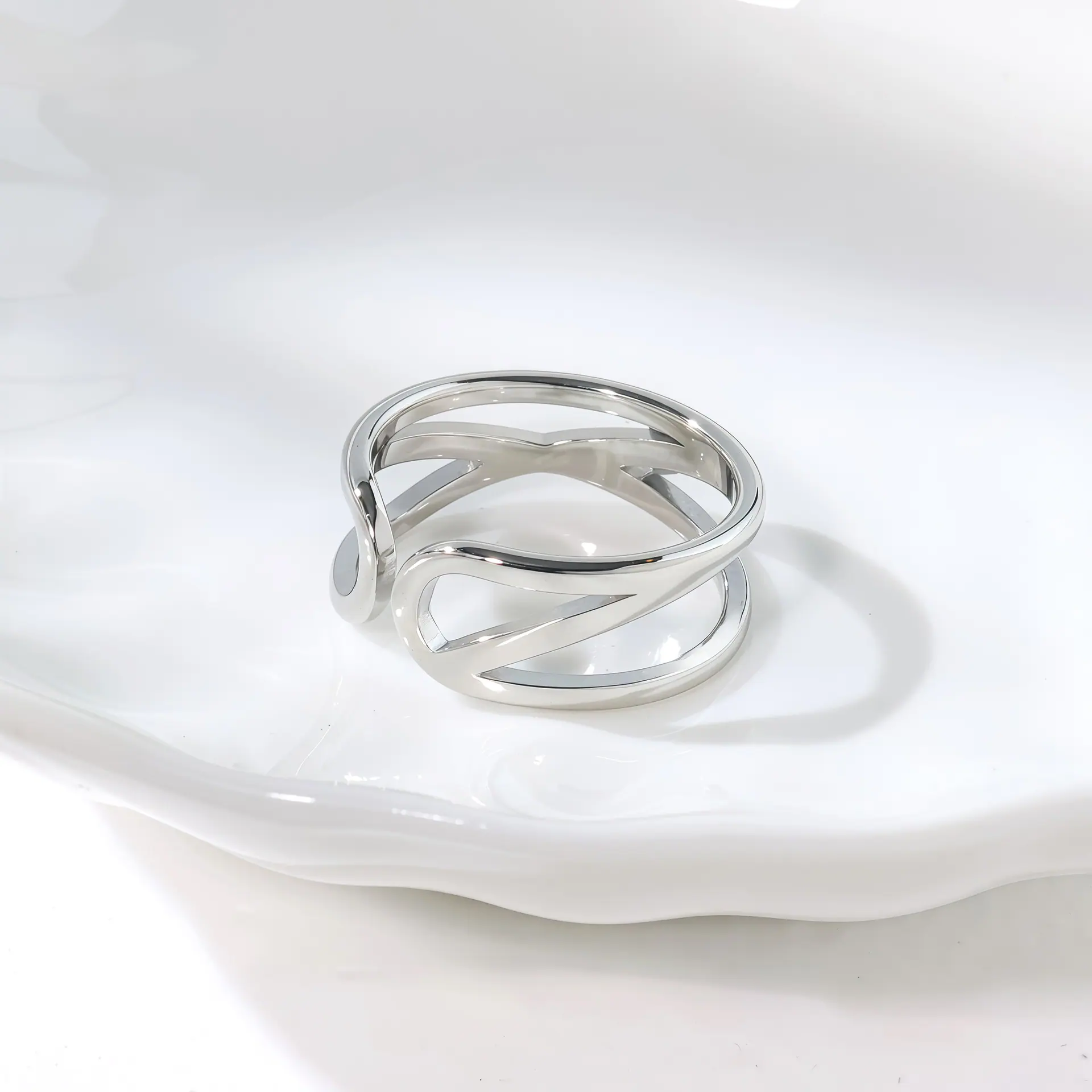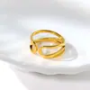 Anel Aberto Banhado a Ouro com Design Vazado Transversal Europeu e Americano, Atacado de Joias de Estilo Moderno e Único, Acessórios Texturizados de Luxo Leve
