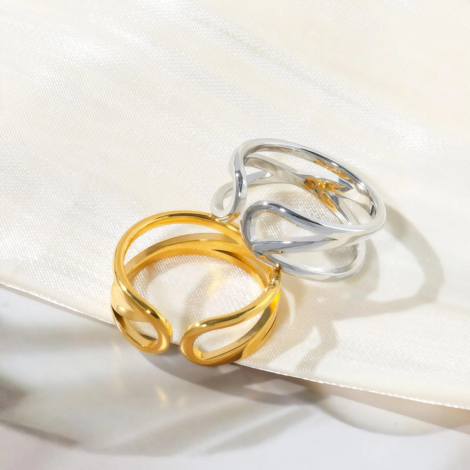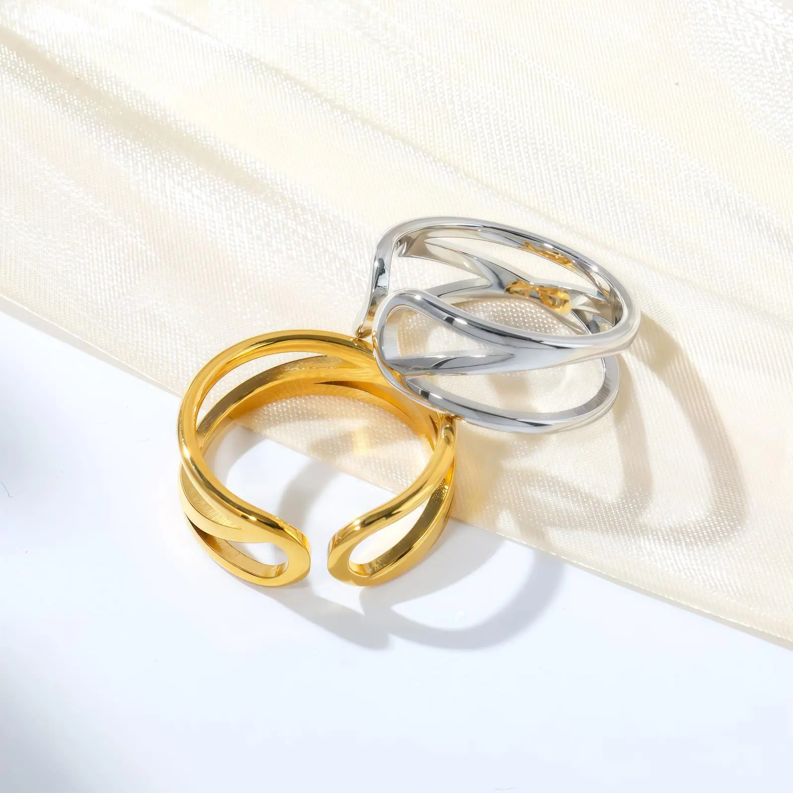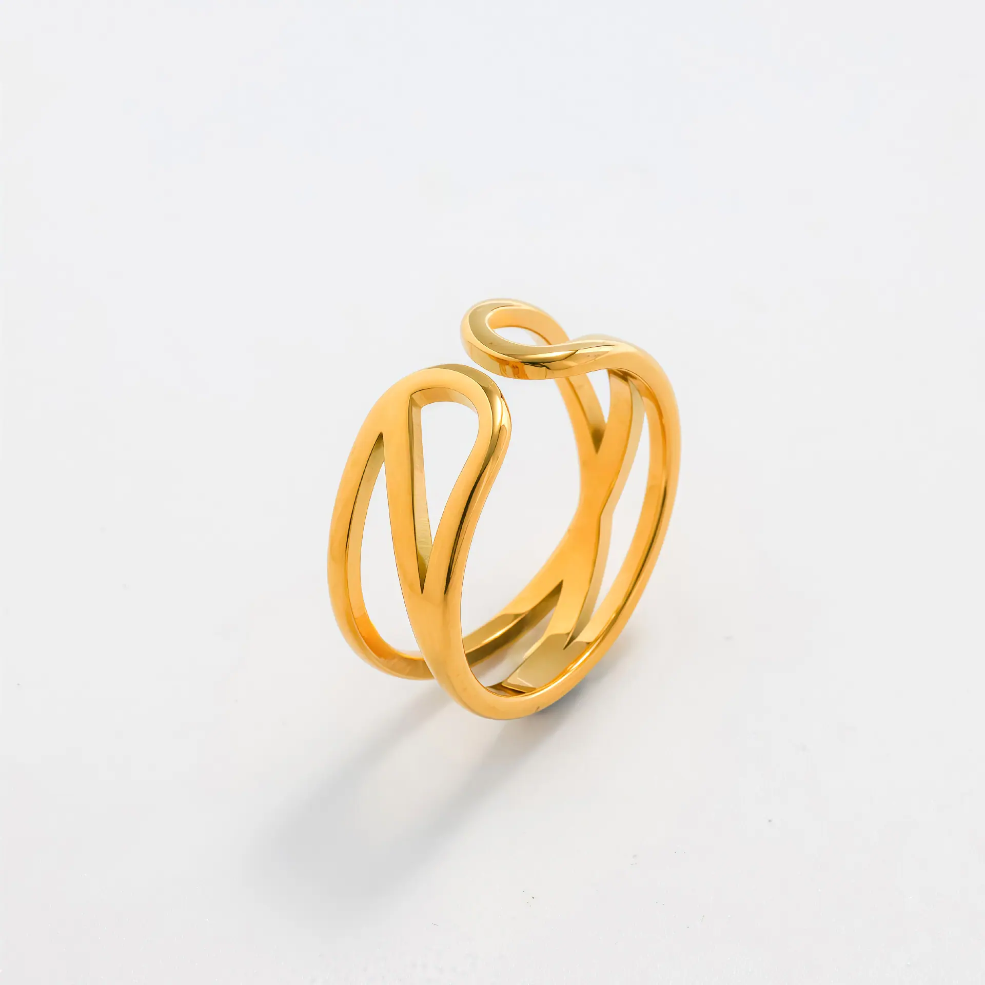 Compre Anel Aberto Banhado a Ouro com Design Vazado Transversal Europeu e Americano, Atacado de Joias de Estilo Moderno e Único, Acessórios Texturizados de Luxo Leve no atacado no Joom.pro