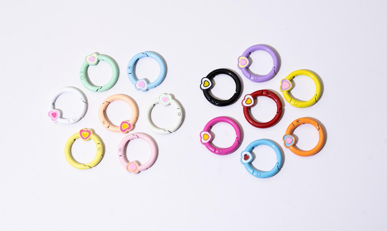 Compre Cor da pintura fivela de mola redondo anel aberto amor anel de mola chaveiro DIY acessórios liga anel de conexão no atacado no Joom.pro