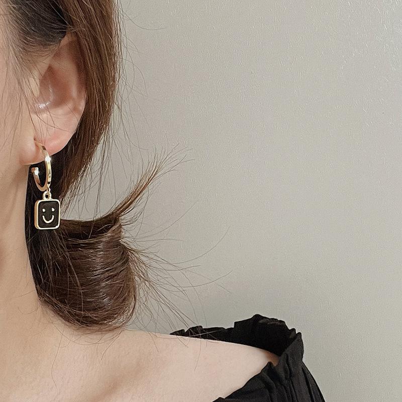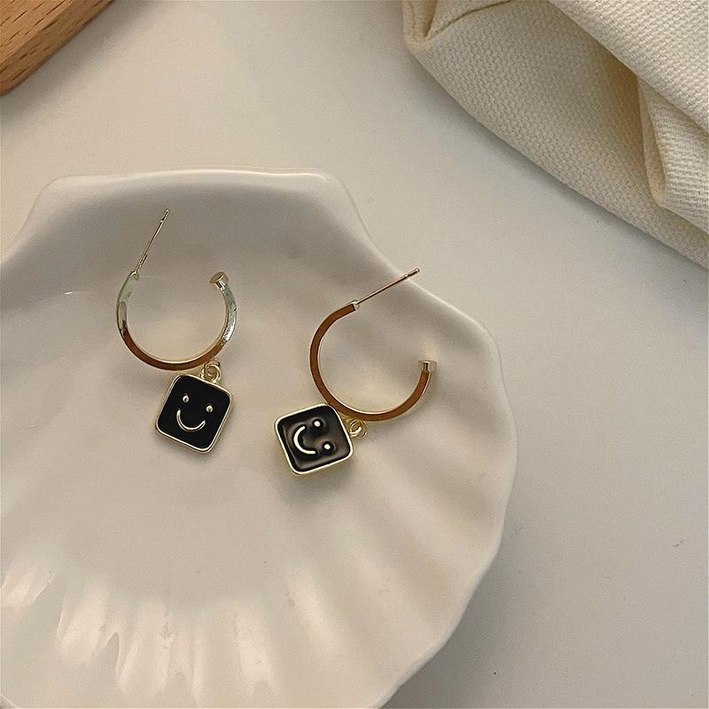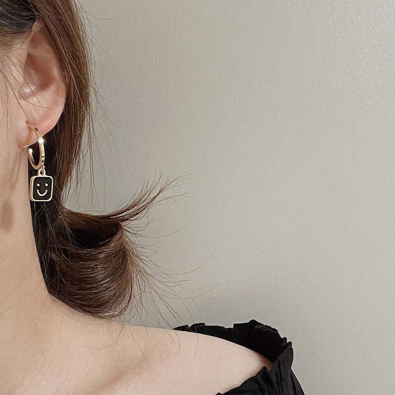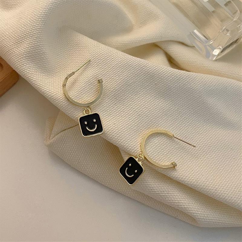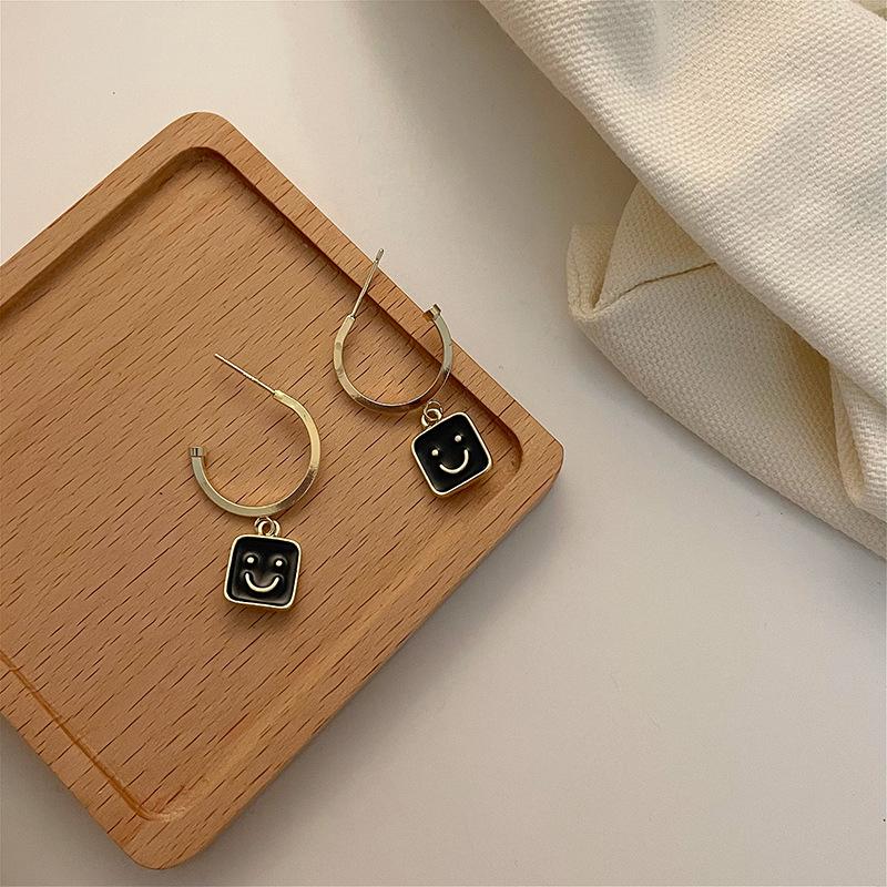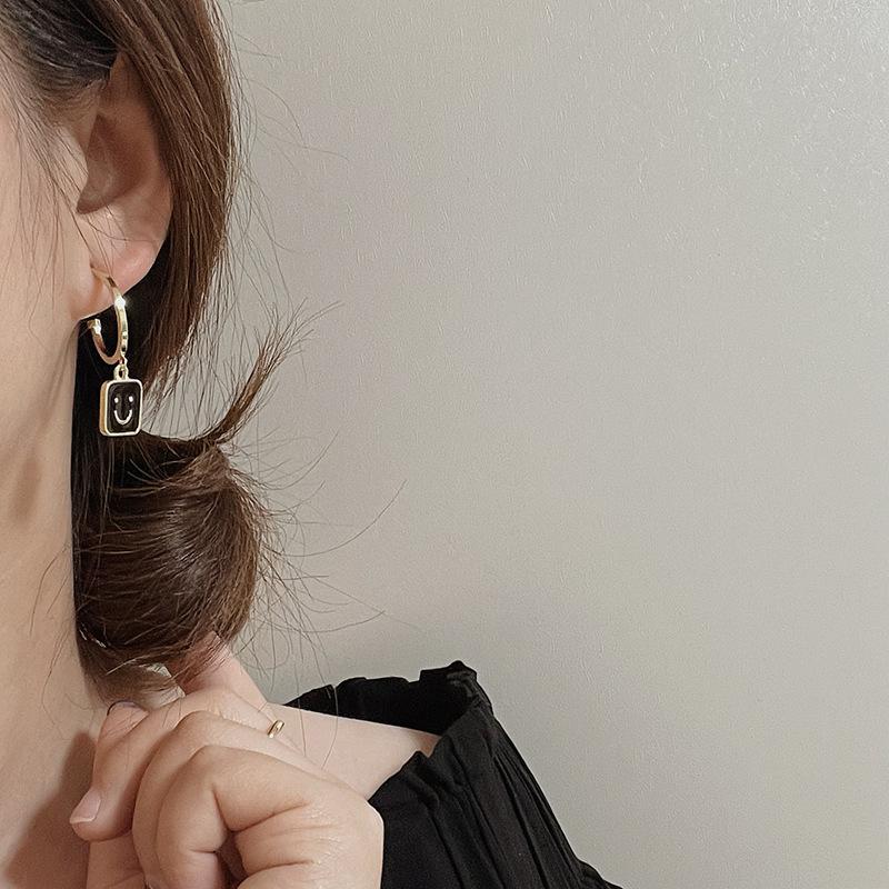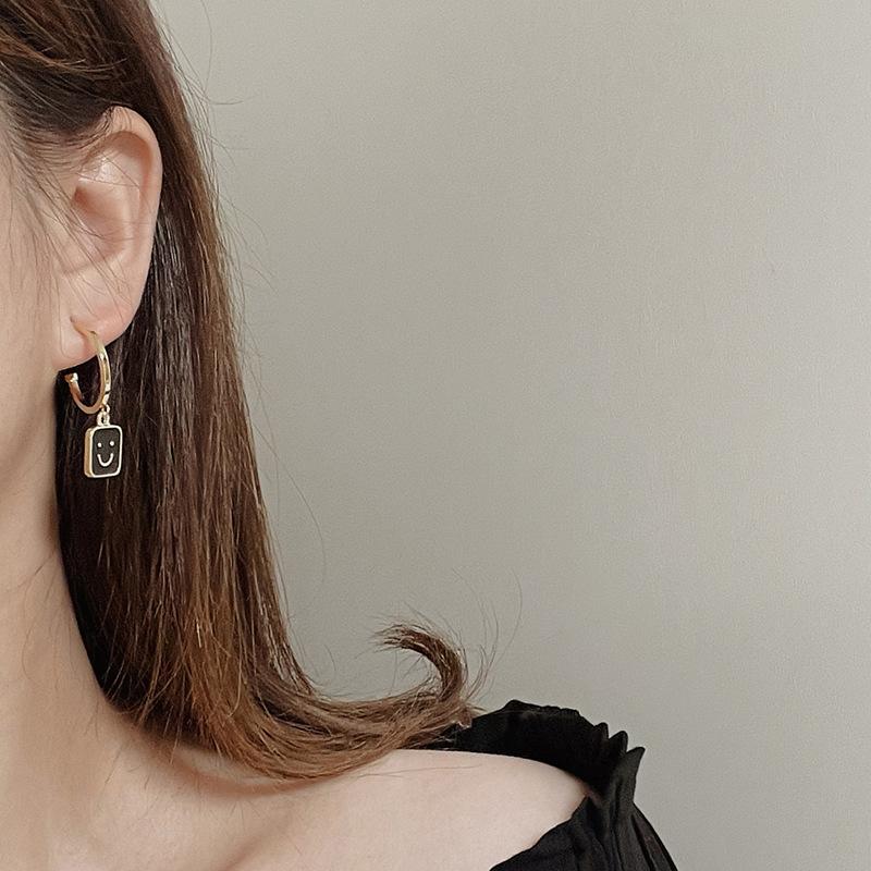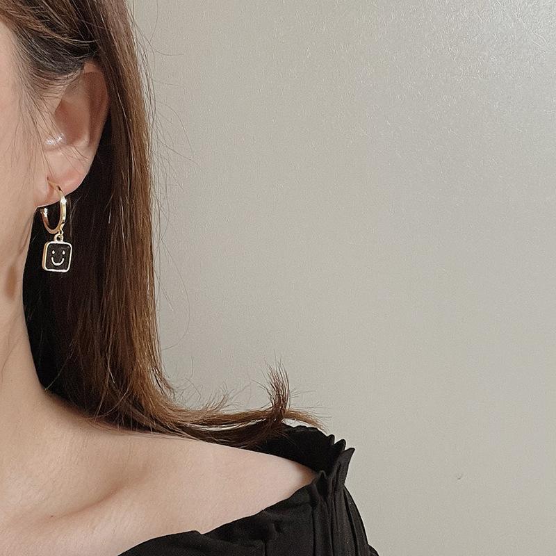 2022 Novo Simples Smiley Face Preto Brincos Pendurados Retrô Versátil Personalidade Metal Redondo Geométrico Brincos Femininos
