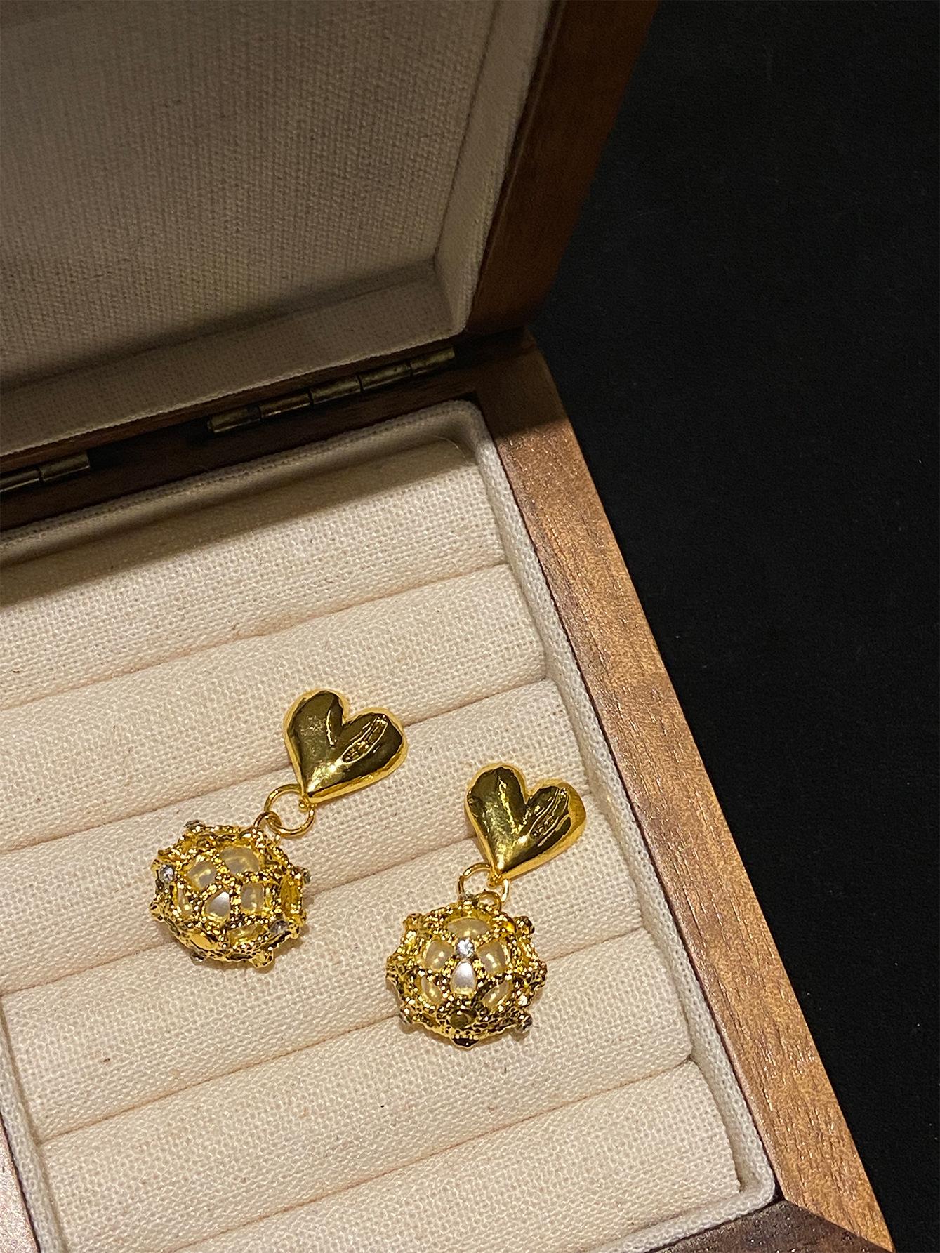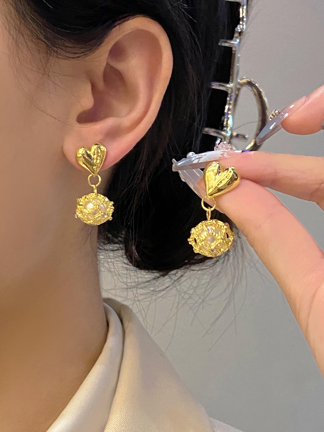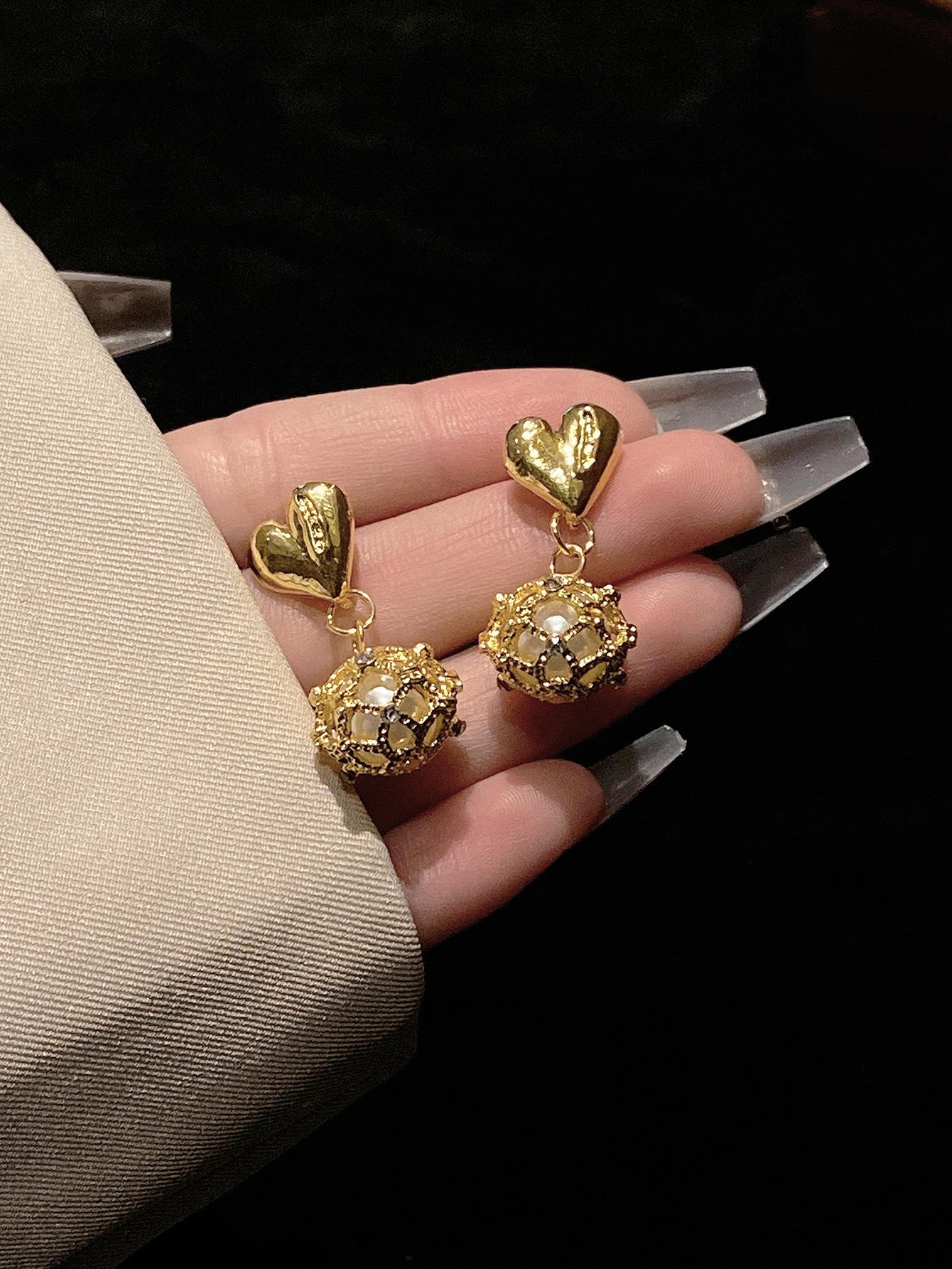 Compre Brincos Coreanos Franceses Exquisitos Pérolas de Amor Temperamento Nicho de Luxo Leve Design High-End Brincos no atacado no Joom.pro