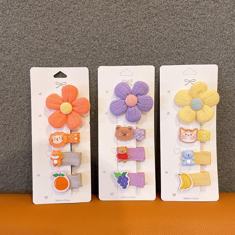 Compre Coreano estilo infantil acessórios para o cabelo doce cor dos desenhos animados animal fruta franja borda clipe princesa bebê tecido flor grampo de cabelo no atacado no Joom.pro