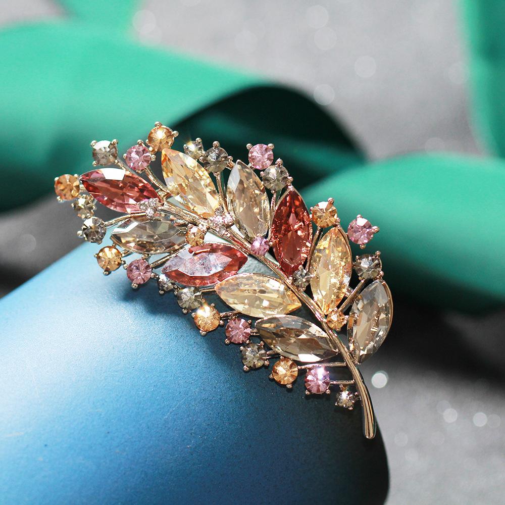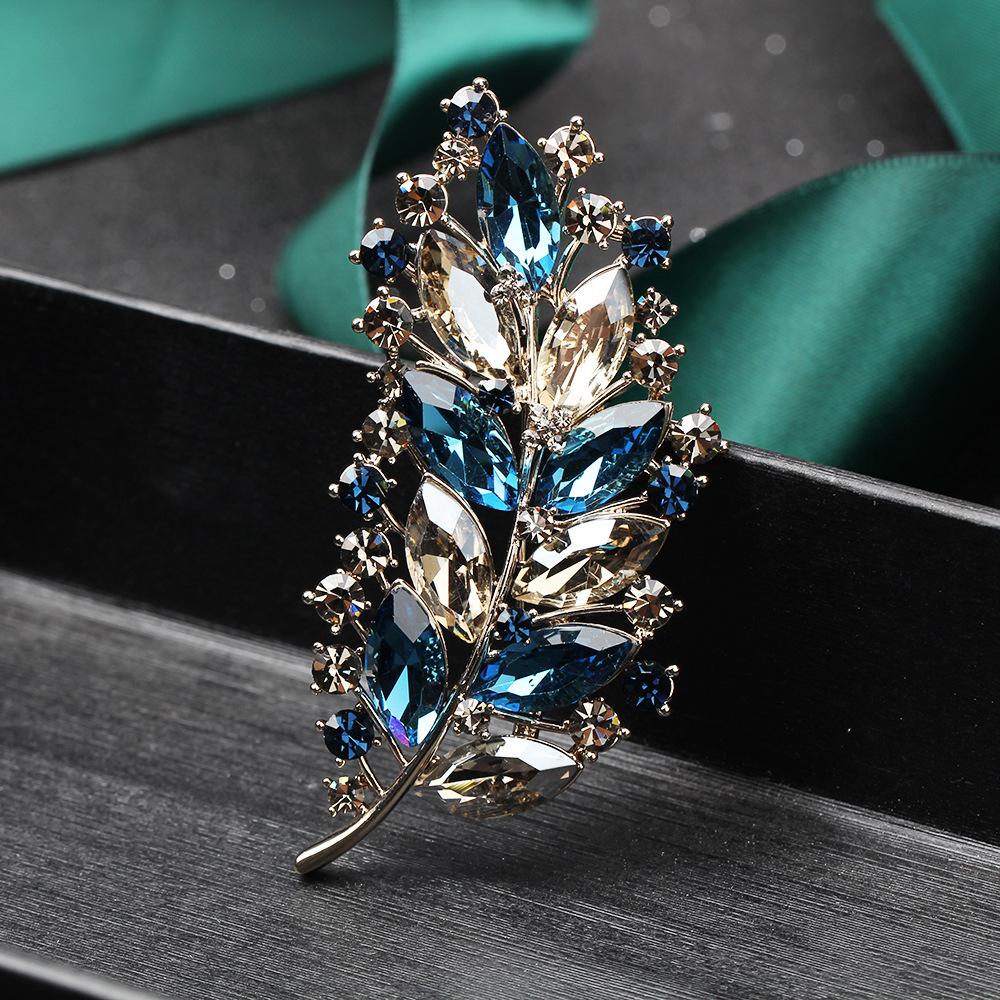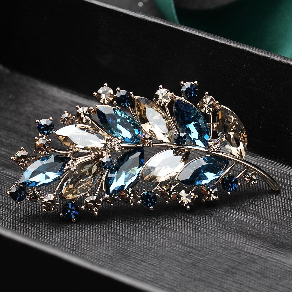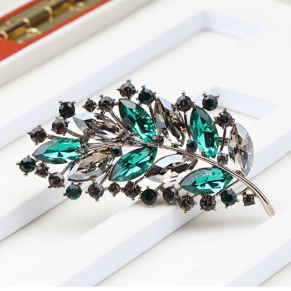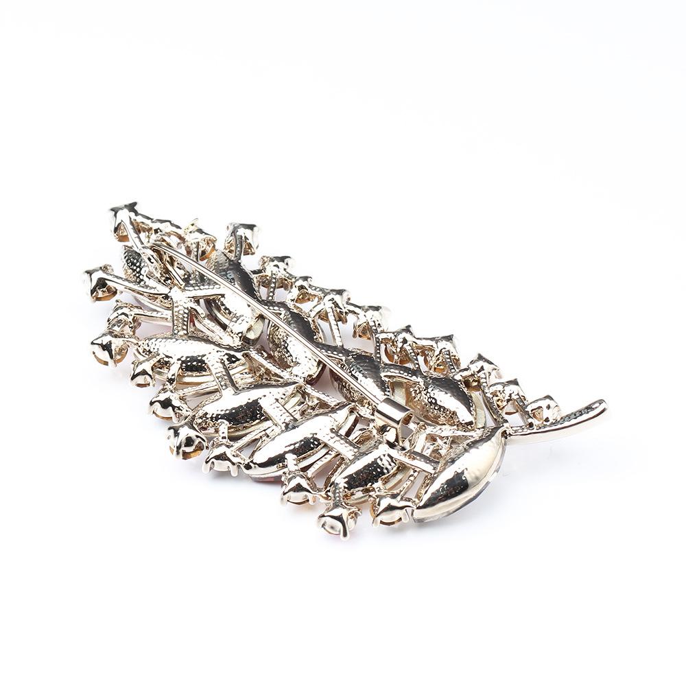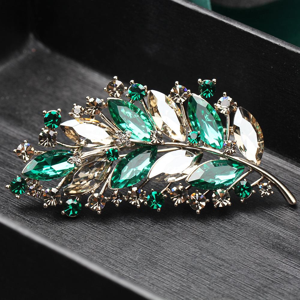 Compre Broche Exagerado de Cristal Artificial de Ouro Galvanizado Vintage de Alta Qualidade Personalizado Multicolorido Folha de Penas Pin Mulheres no atacado no Joom.pro