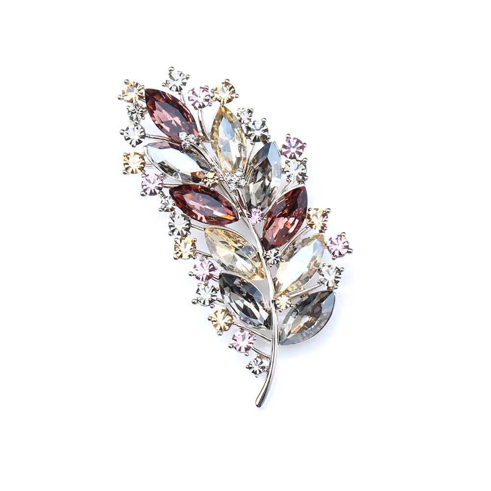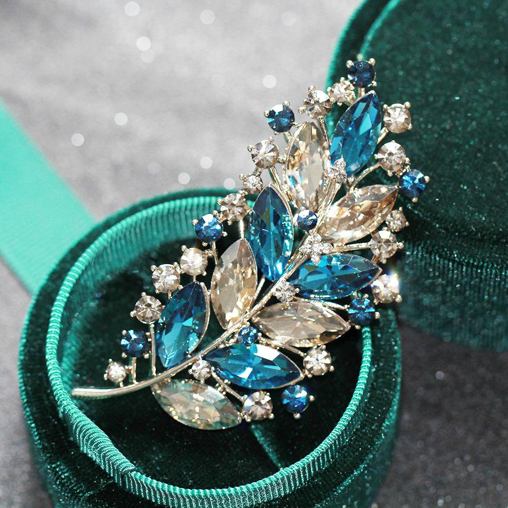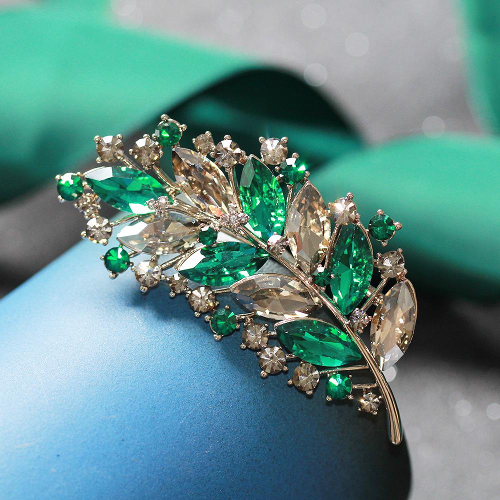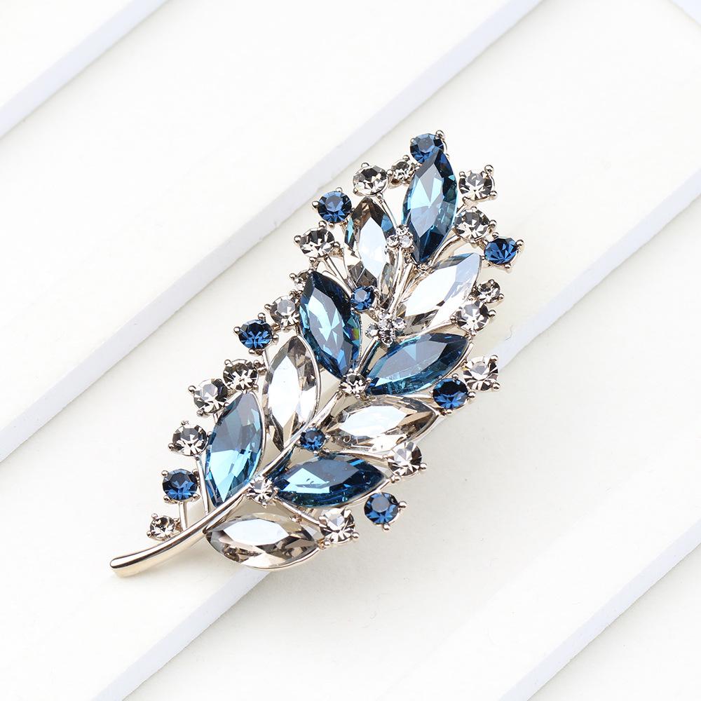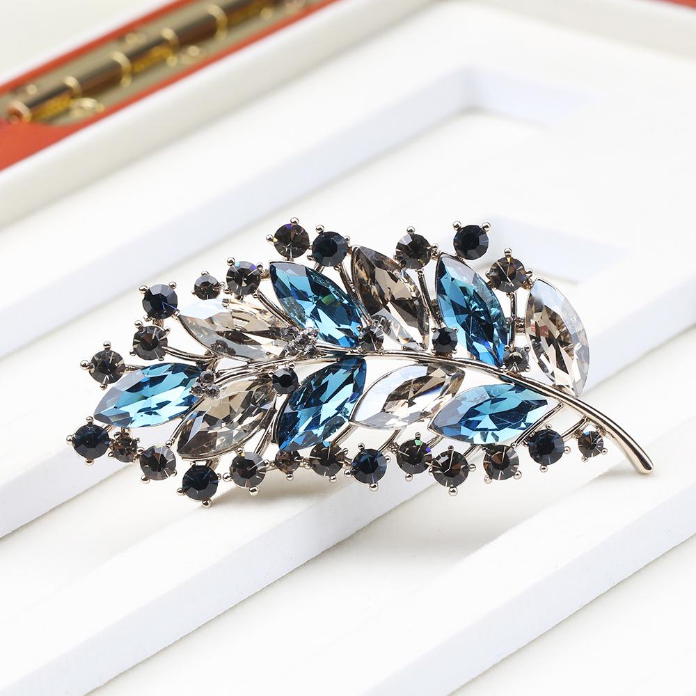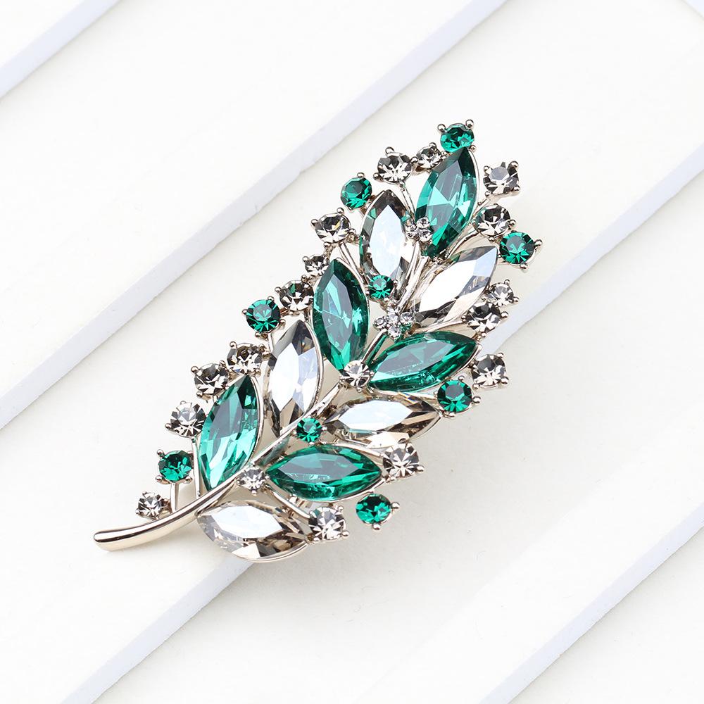 Compre Broche Exagerado de Cristal Artificial de Ouro Galvanizado Vintage de Alta Qualidade Personalizado Multicolorido Folha de Penas Pin Mulheres no atacado no Joom.pro