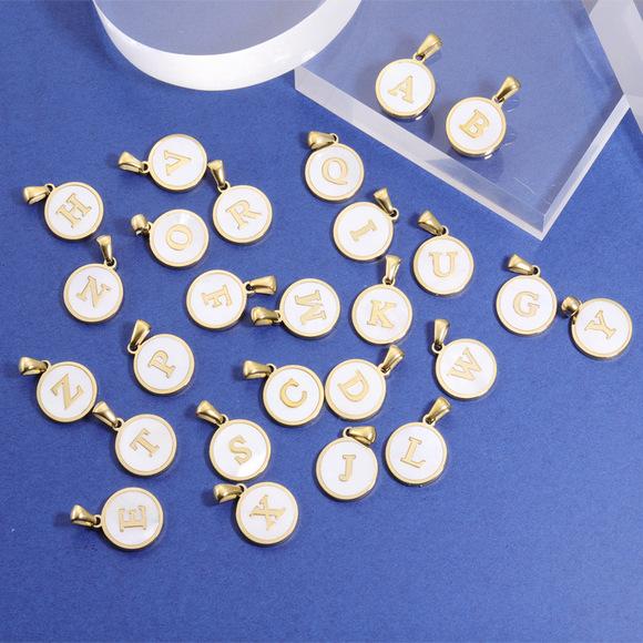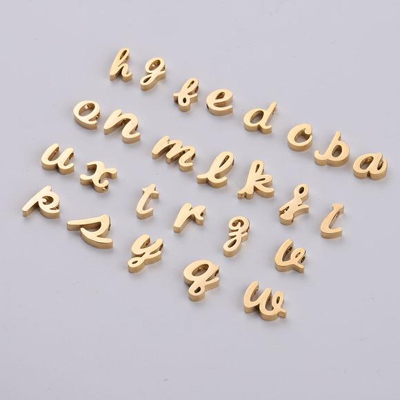 ![]() RUMNVNTY spot aço inoxidável espelho ouro letra pequeno furo contas 26 letras inglesas AZ pingente de conta