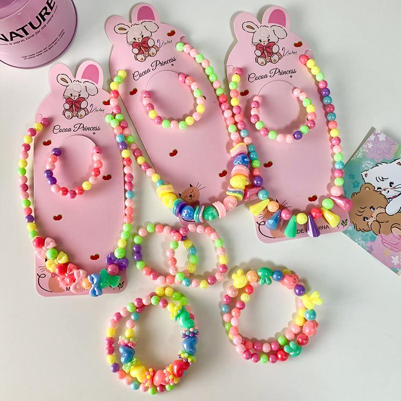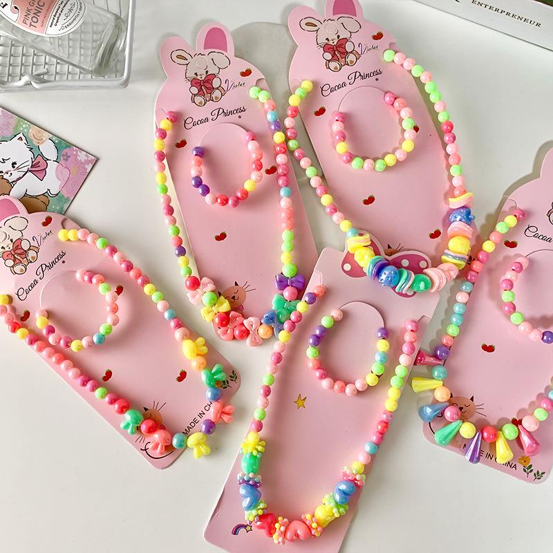 Nova Rosa Dos Desenhos Animados Colar Pulseira Jóias Princesa Bonito Conjunto de Jóias Princesa Acessórios Da Menina
