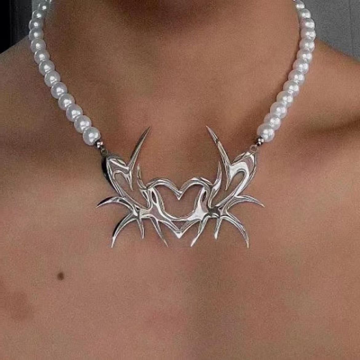 Compre Colar de Espinho de Pérola Escura dos homens e mulheres hip hop personalidade titânio aço talão cadeia pingente hip hop punk hipster jóias no atacado no Joom.pro
