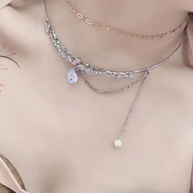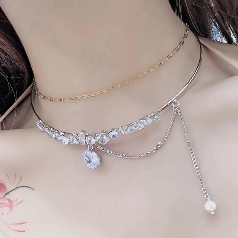 Compre Nicho design leve luxo zircão clavícula cadeia on-line celebridade pingente all-match clavícula cadeia Nova colar cinta para mulheres no atacado no Joom.pro