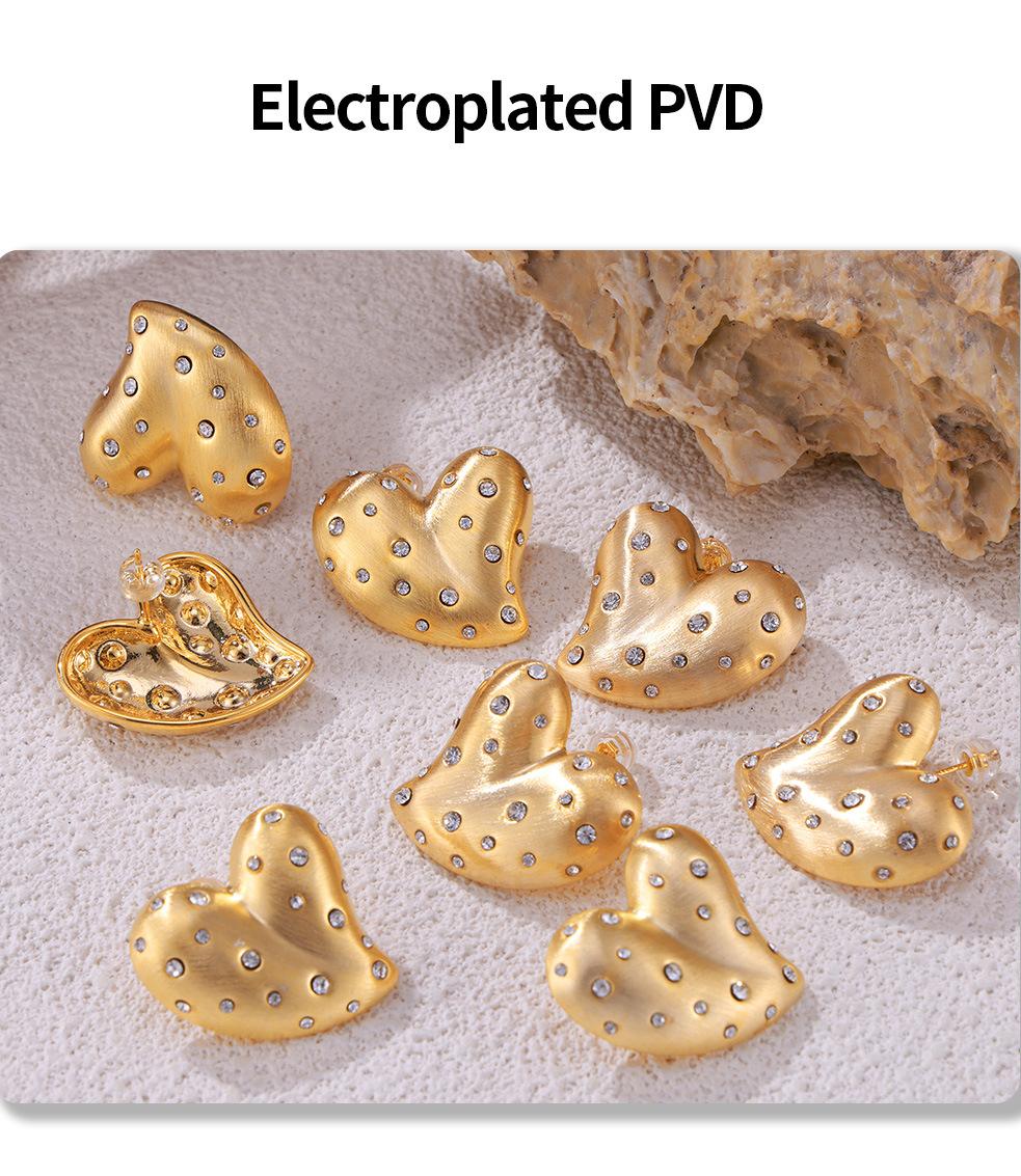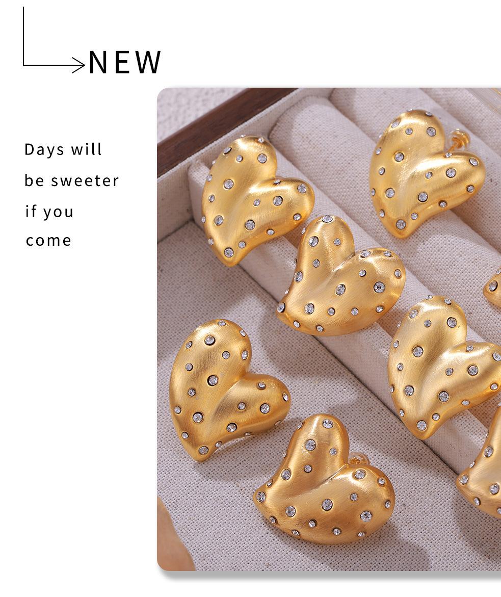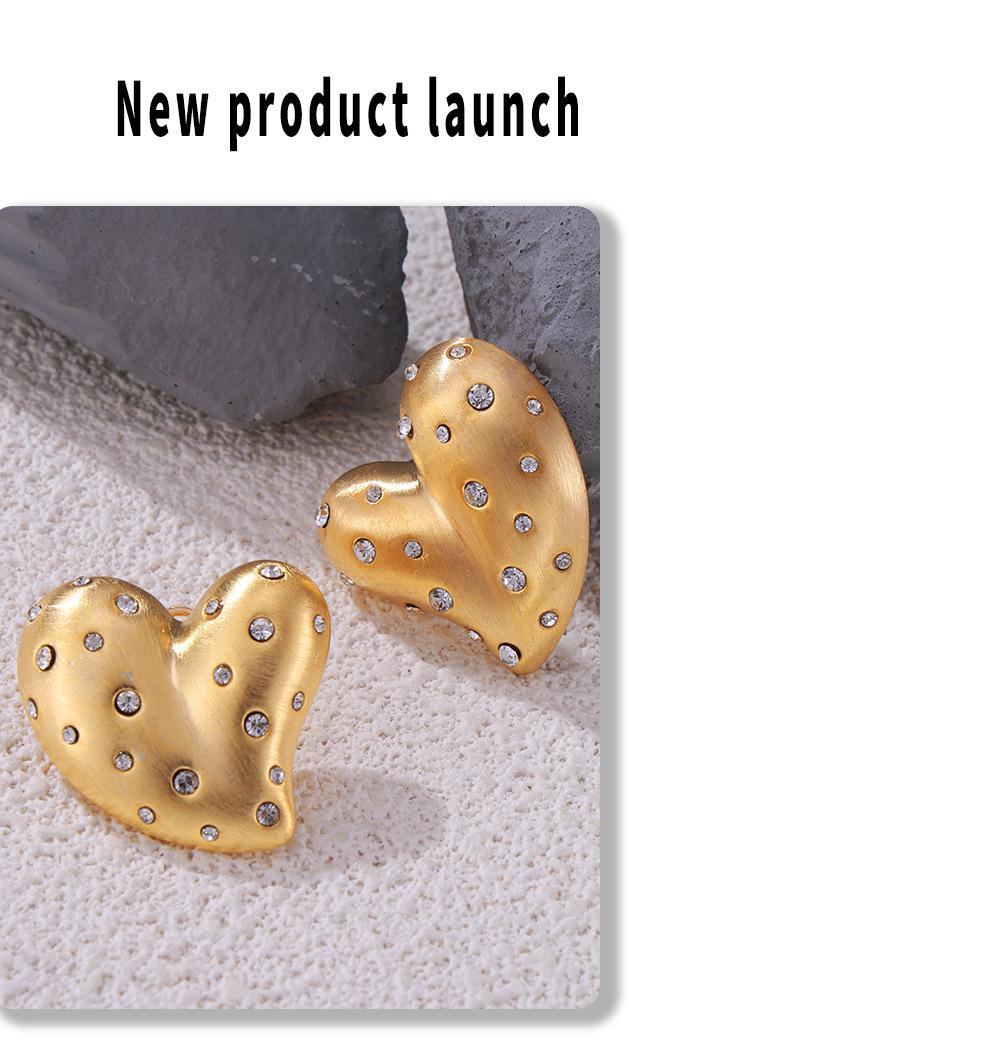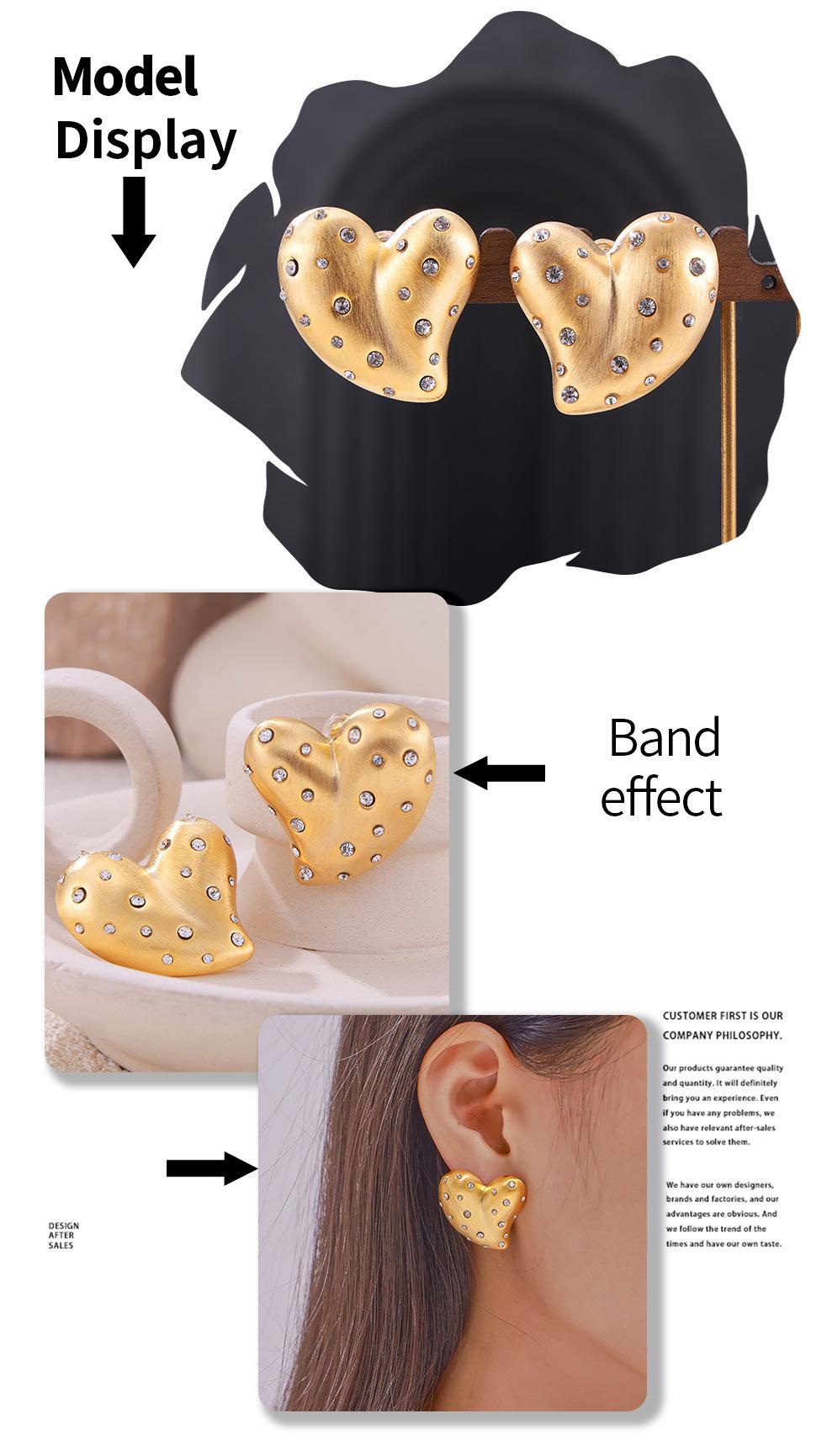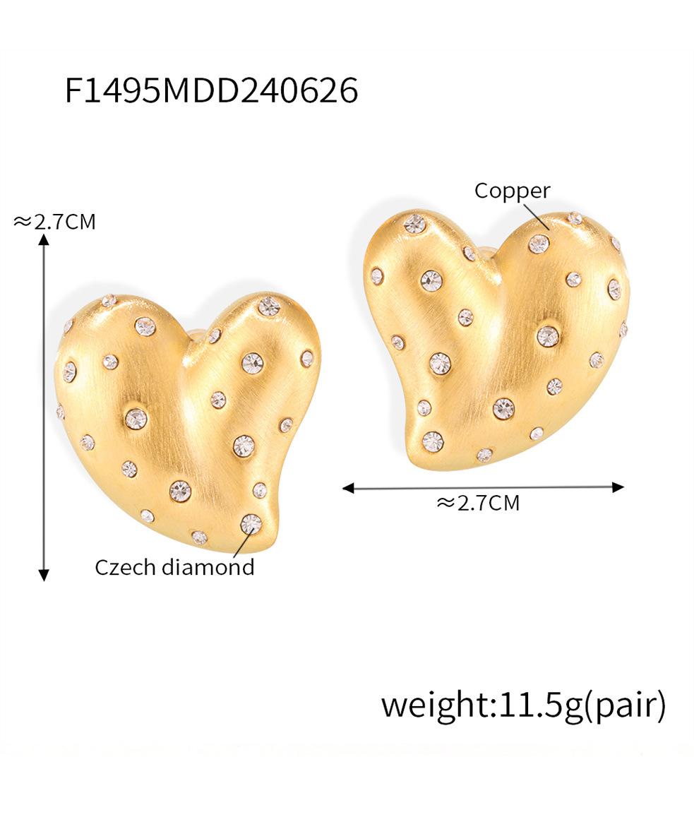 Francês Retro Elegante Personalidade Escovado Textura Jóias Amor Forma Diamante Design Sentido Brincos de Cobre
