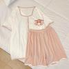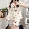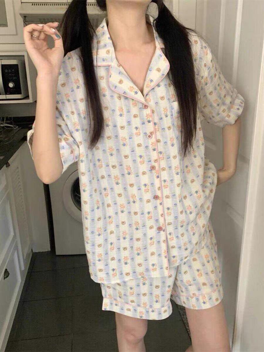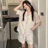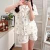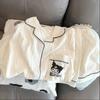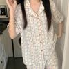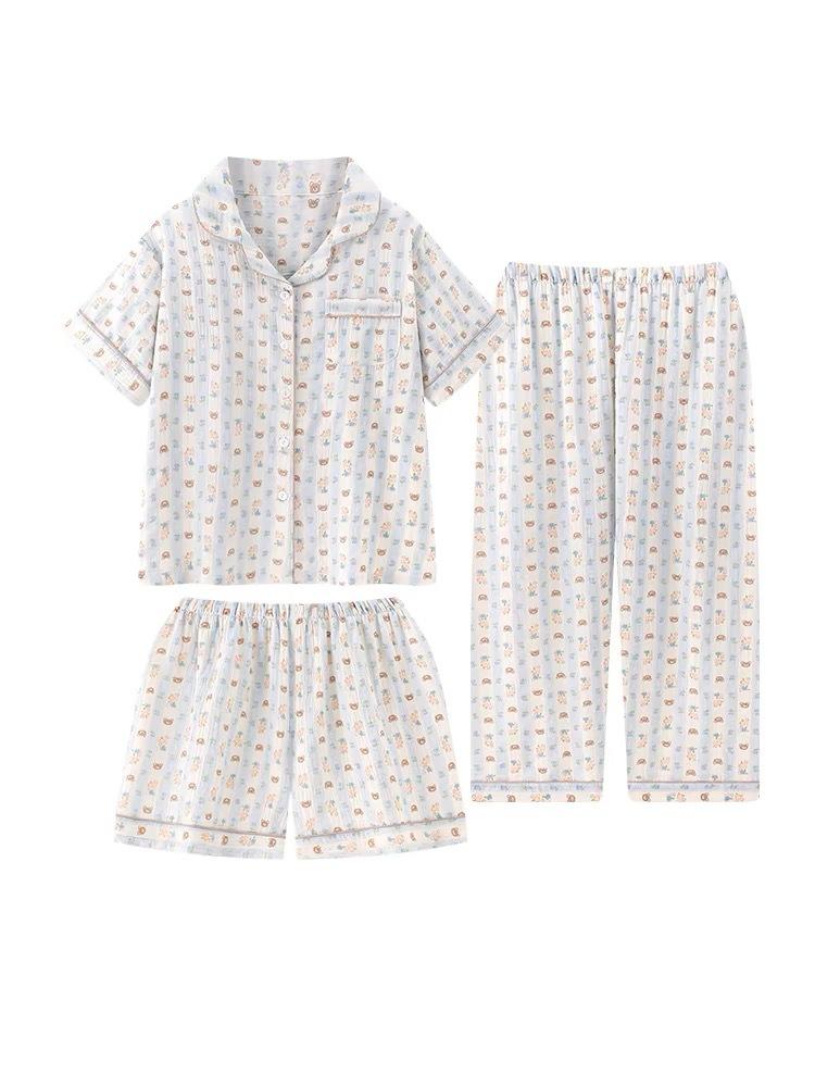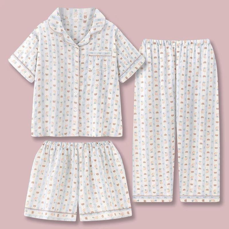 2024 Verão Três Peças Shorts de Manga Curta Pijamas terno Feminino Lapela Feminino Simples Roupas de Casa para Mulheres