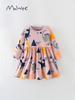 Malwee meninas saia outono novo europeu e americano lazer infantil em torno do pescoço impresso manga comprida vestido estilo estrangeiro