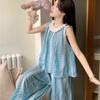 Pijamas Colete de Verão Feminino Calças Sling Estilo Coreano Doce Renda Listrado Roupas Domésticas terno Roupa Externa Fino