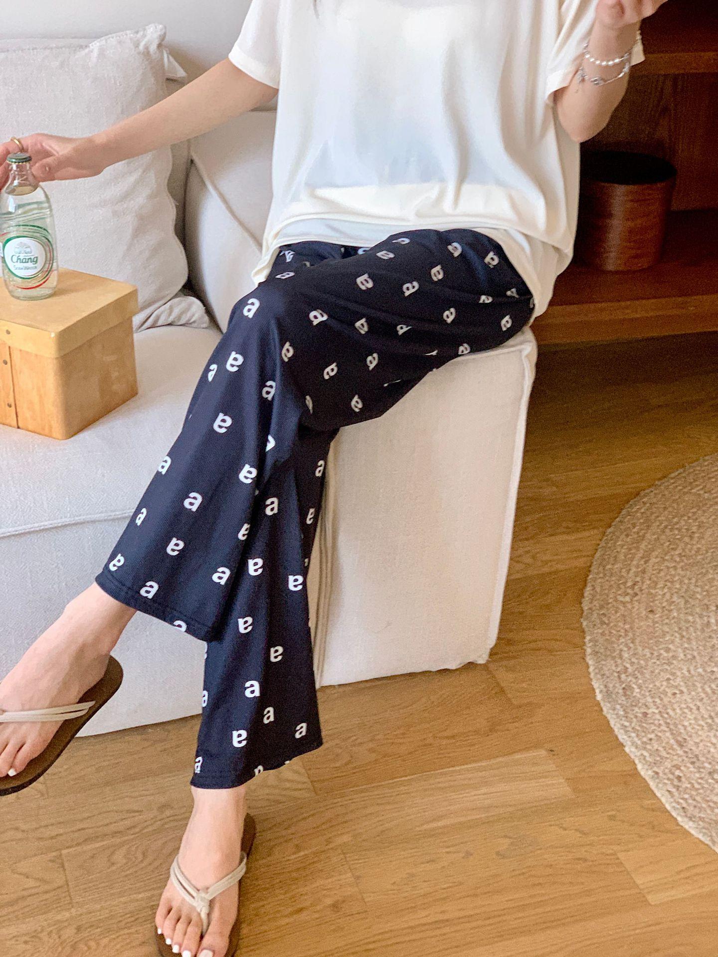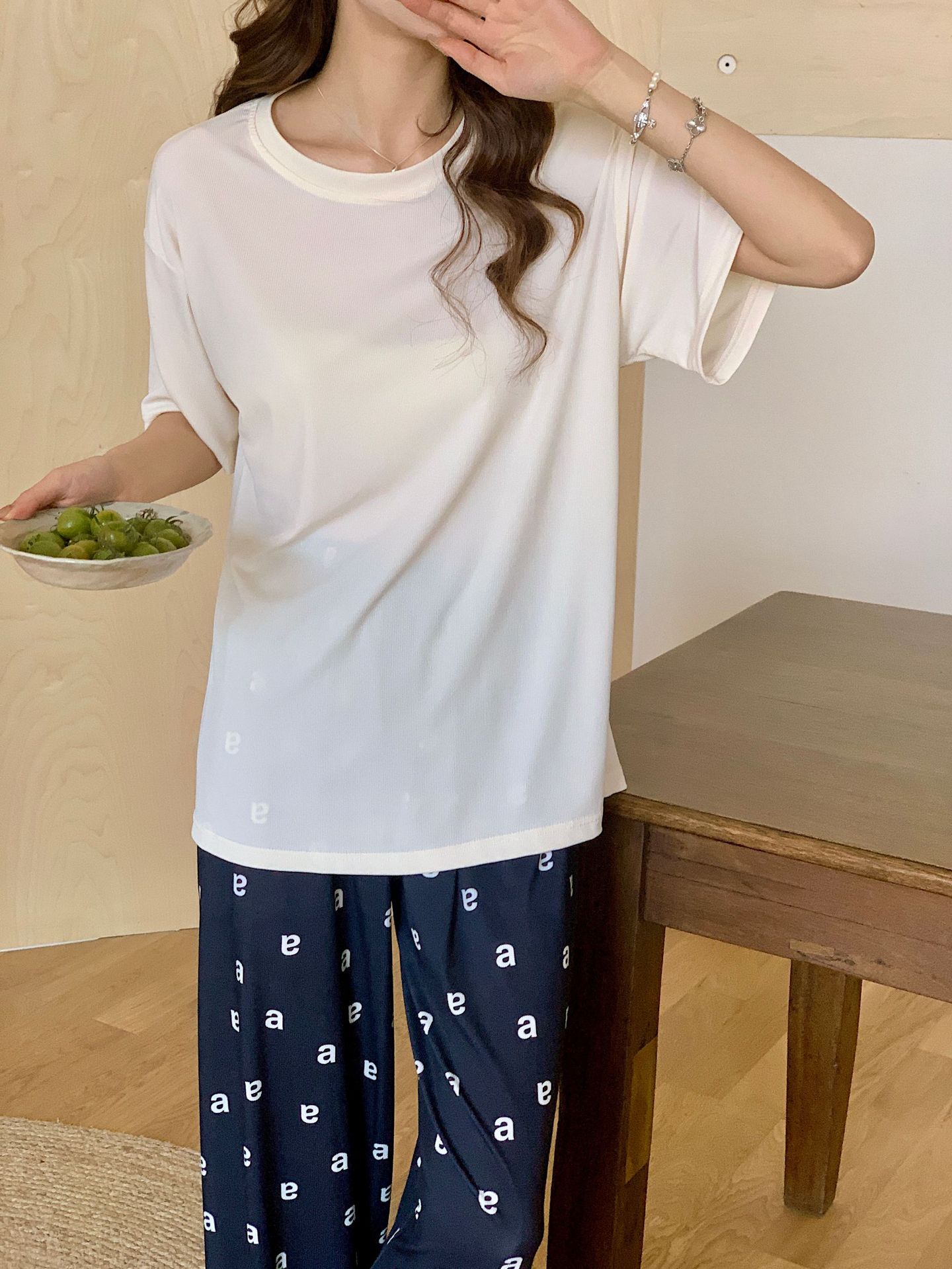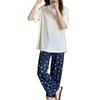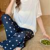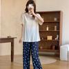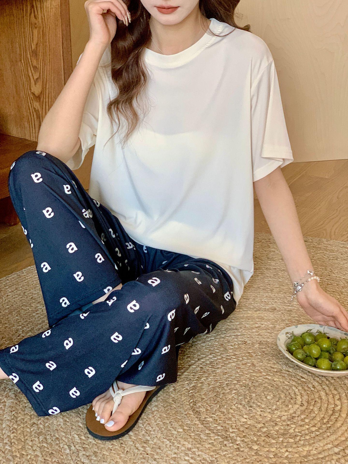 Pijama de fio de seda de gelo feminino solto terno de duas peças de manga curta top casual calças de verão outwear moda roupas para casa