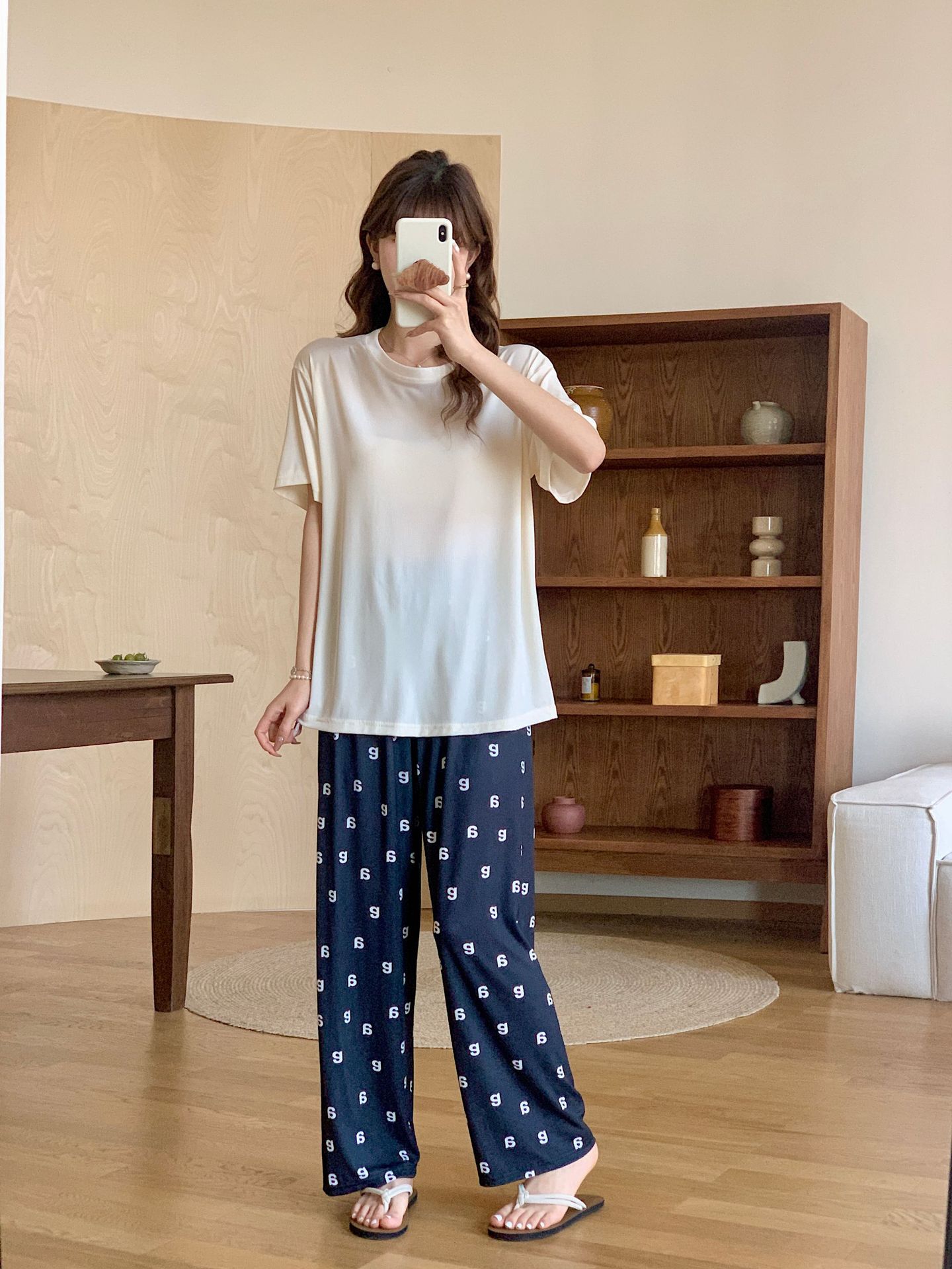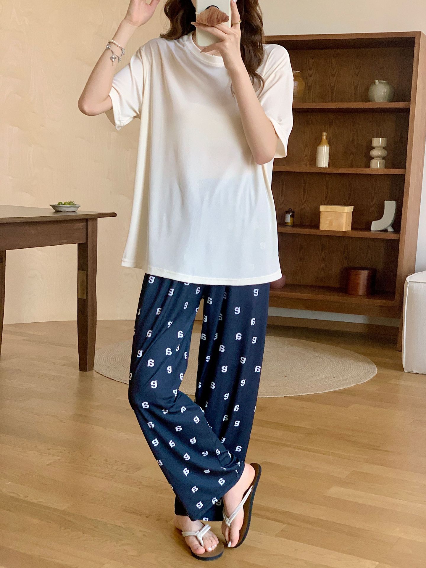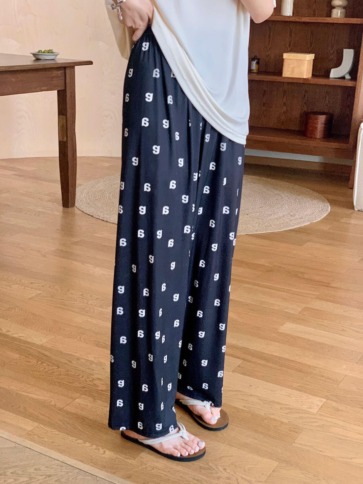 Pijama de fio de seda de gelo feminino solto terno de duas peças de manga curta top casual calças de verão outwear moda roupas para casa
