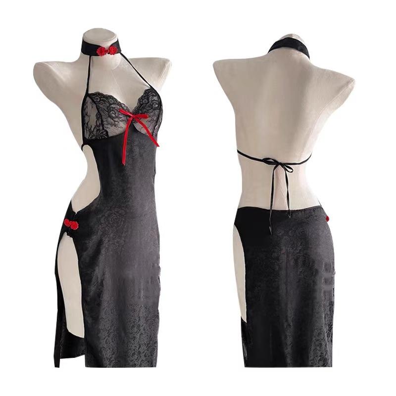 Roupa íntima sexy borboleta Miaosi, sexy, dividida, retrô, cheongsam, uniforme, tentação, perspectiva oca, alça slim fit, A353