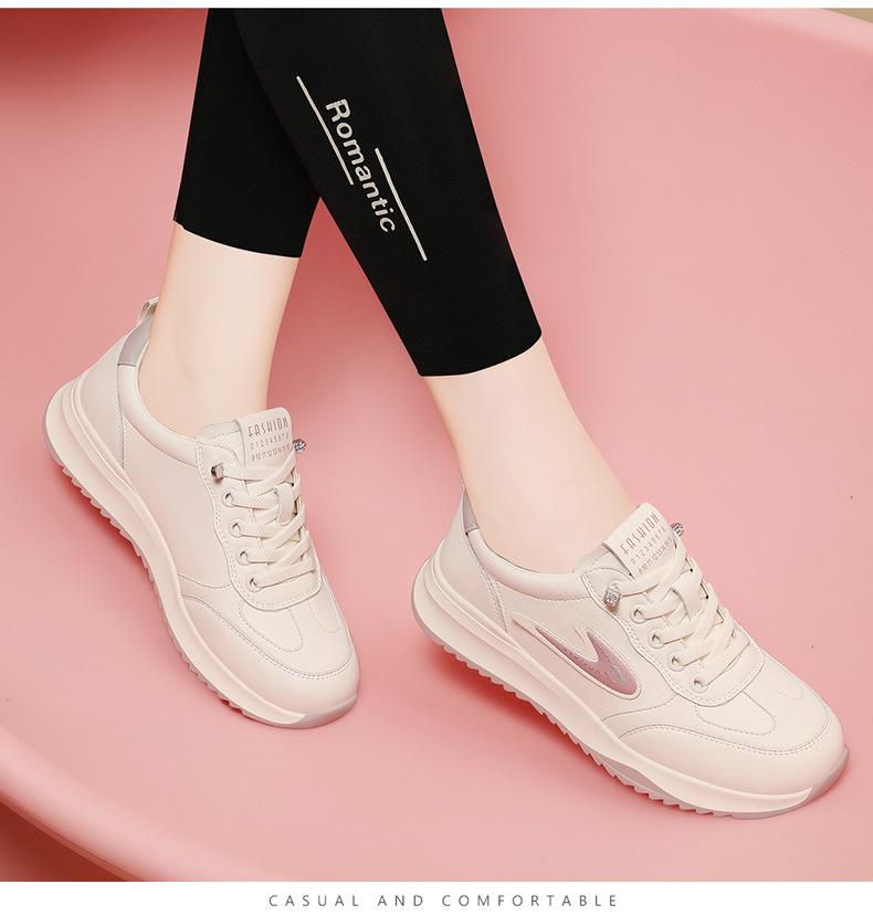 Compre Sapatilha de couro feminina 2024 Nova moda respirável primavera e outono para todos os jogos sapatos femininos de couro de sola grossa sapatos casuais femininos no atacado no Joom.pro