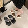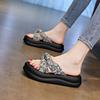 Chinelos de estilo nacional de estilo chinês novo verão feminino liso desgaste externo 2024 chinelos preguiçosos verdes