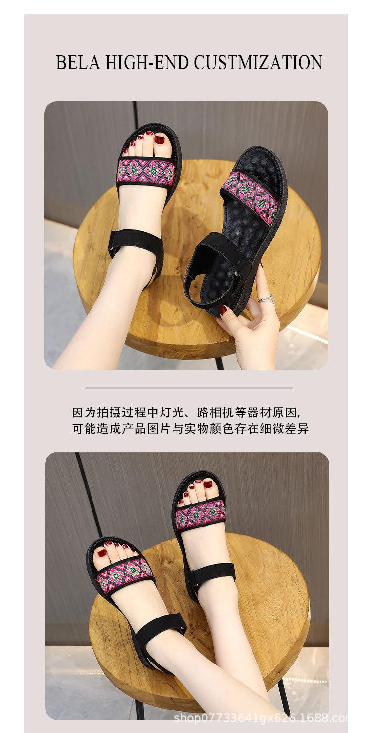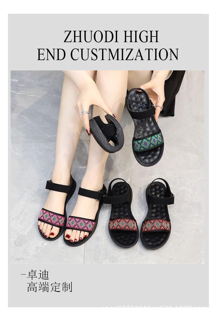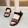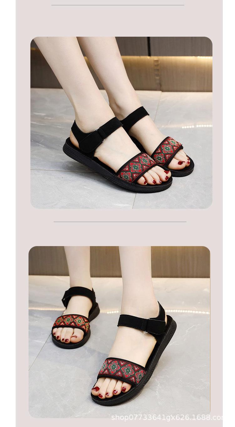 Sandálias planas de estilo étnico Estilo ocidental elegante 2024 verão novo simples fundo macio confortável sandálias abertas