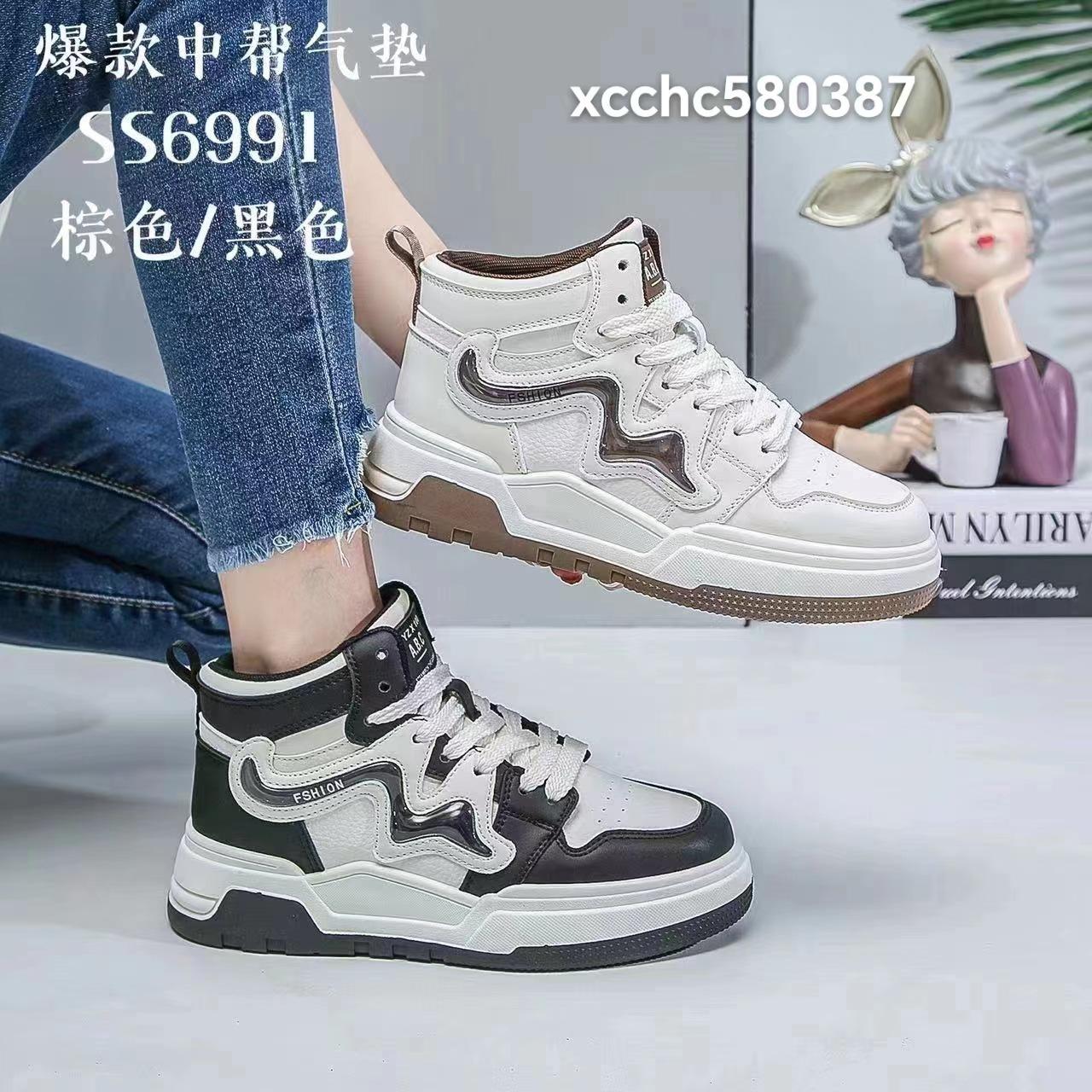 2024 Novos Tênis Casuais de Cano Médio com Amortecimento de Ar Modernos Sapatos Brancos Ss6991