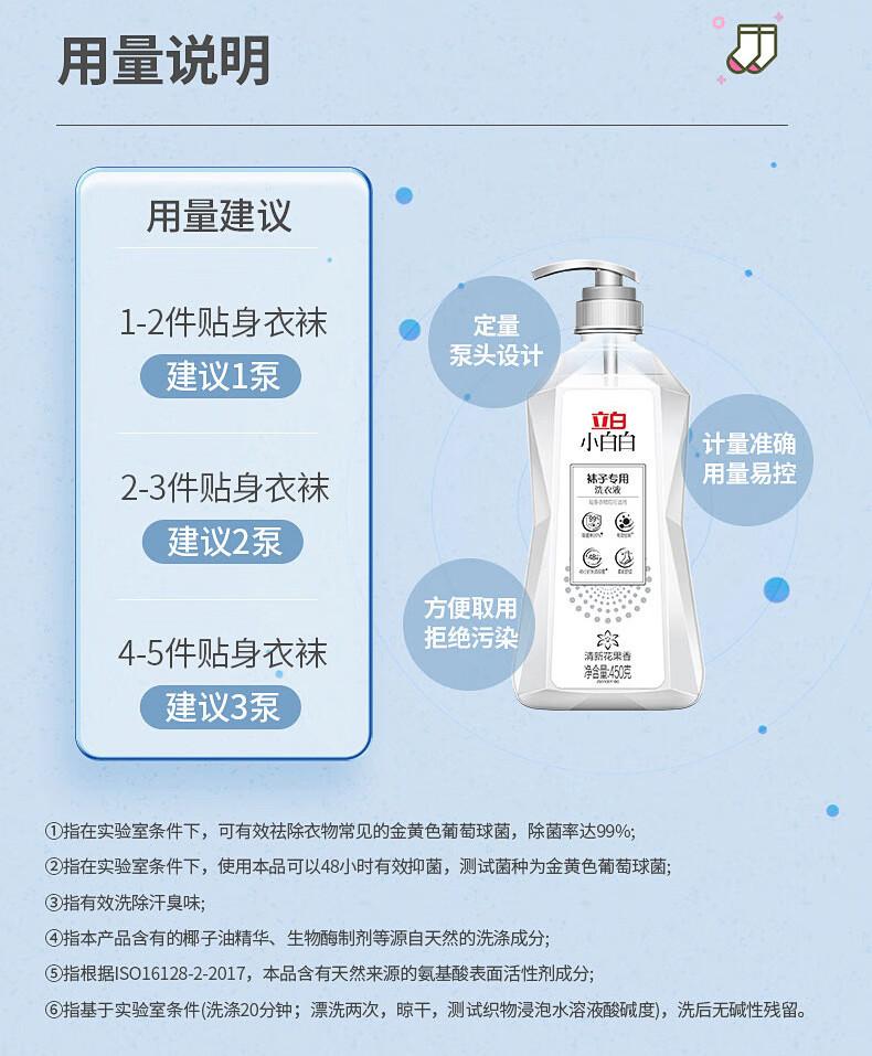 Detergente Líquido Especial para Meias Brancas Liby Xiaobai 450g Esterilização Limpeza Antibacteriano de Longa Duração Remoção de Manchas Doméstico Genuíno Atacado