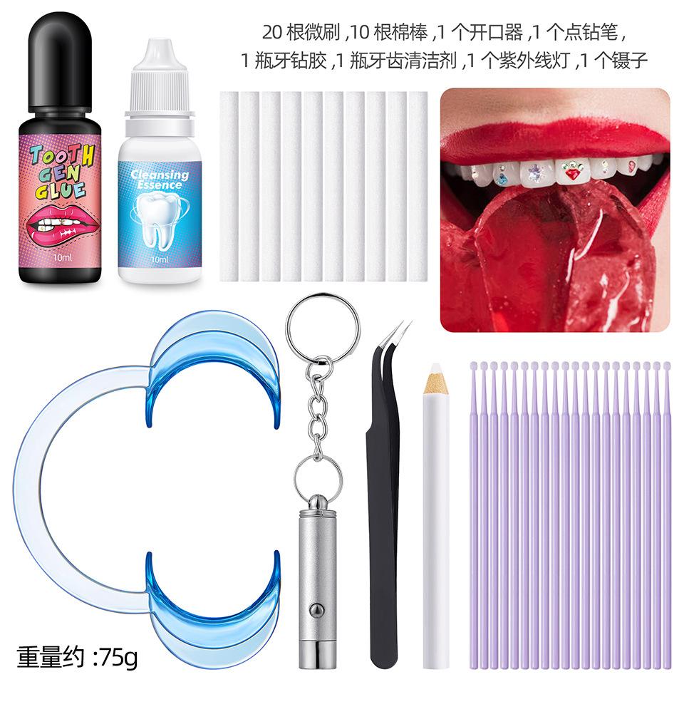 Suit, Dental drill glue, Detergent, opener, ultraviolet lamp, micro brush, cotton swab, Tweezers, Drill pointi...