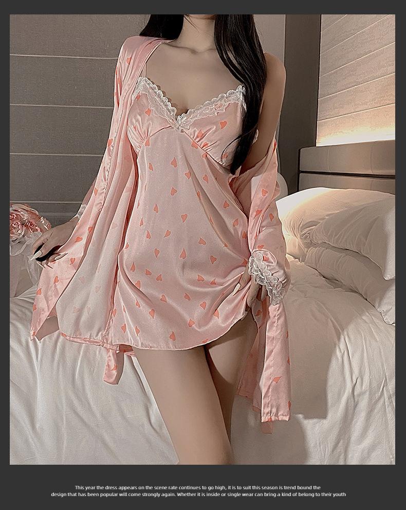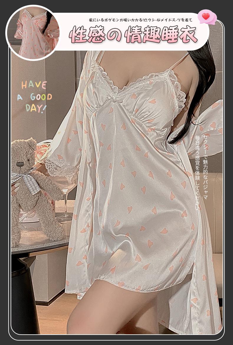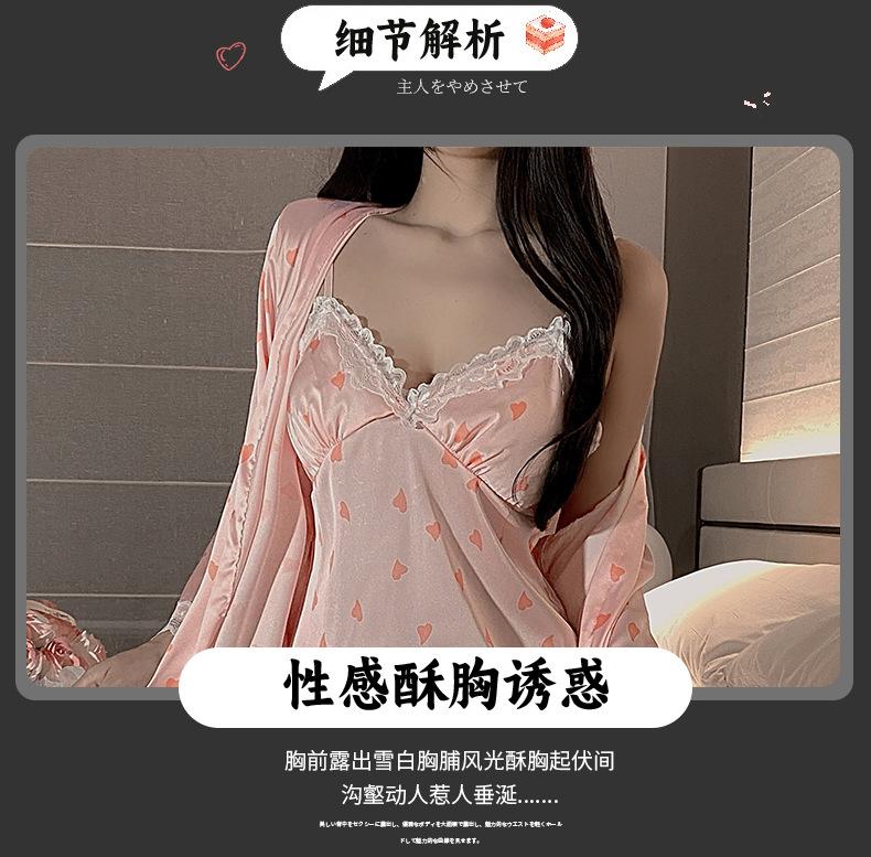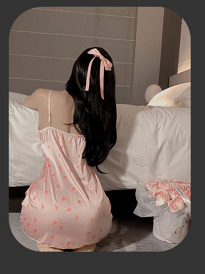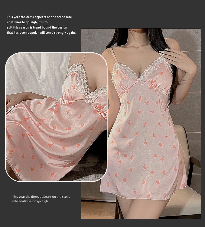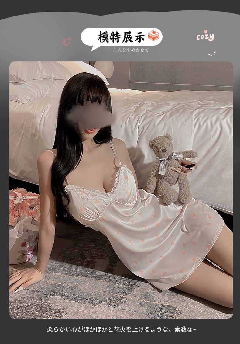 Pijama Sexy Engraçado Noite Saia Feminina de Seda de Gelo com Almofada de Peito Impressa Nova Doce Princesa Estilo Puro Desejo Camisola