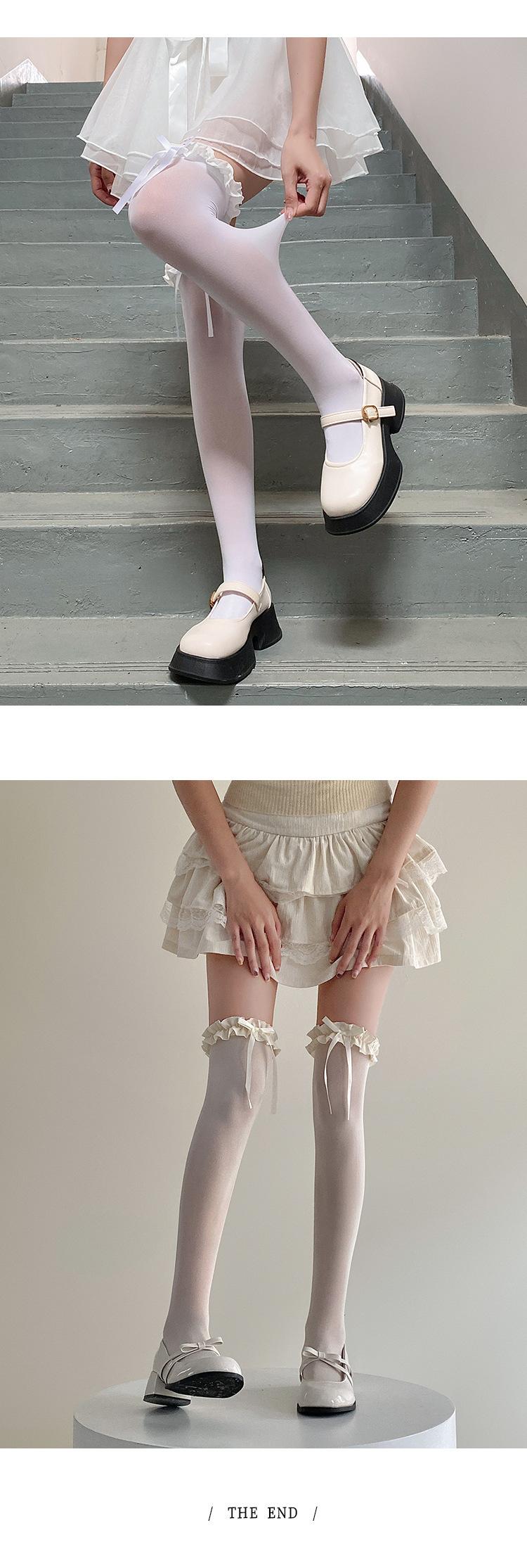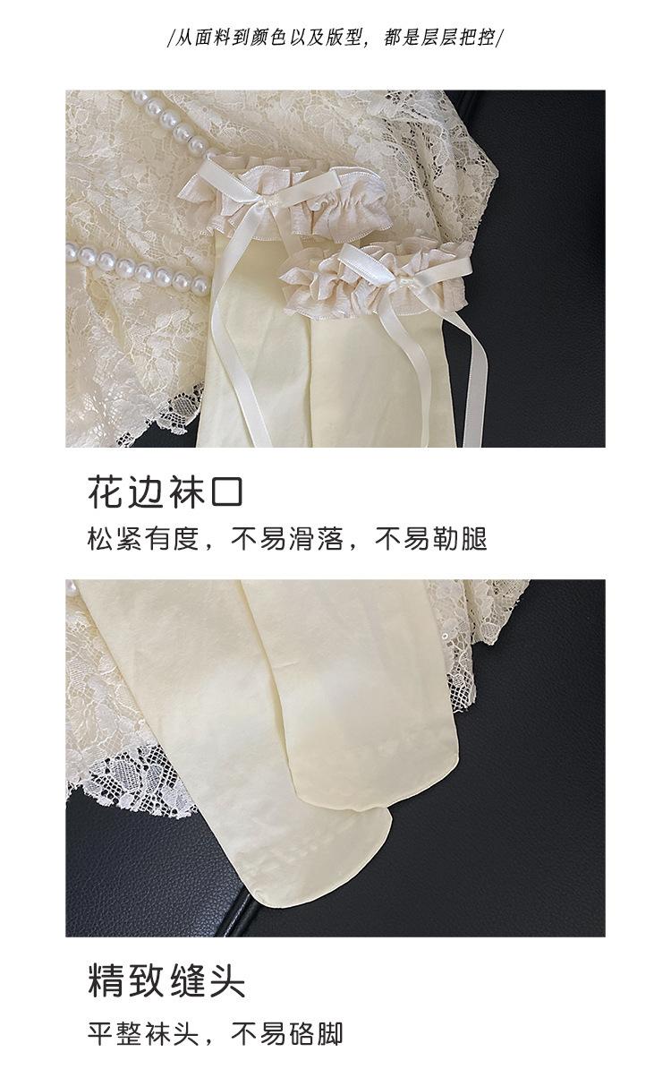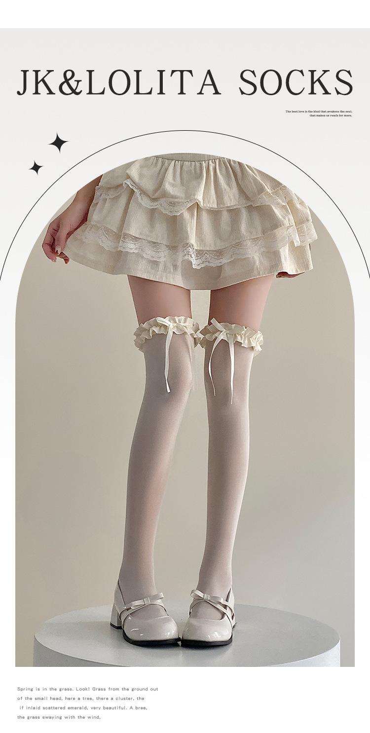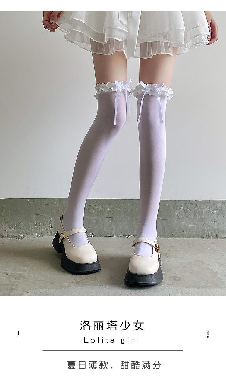 Laço Branco Sobre o Joelho Feminino Primavera e Verão Renda Fina Lolita Tubo Longo Renda Leite Branco Ballet Estilo Coxa Meias