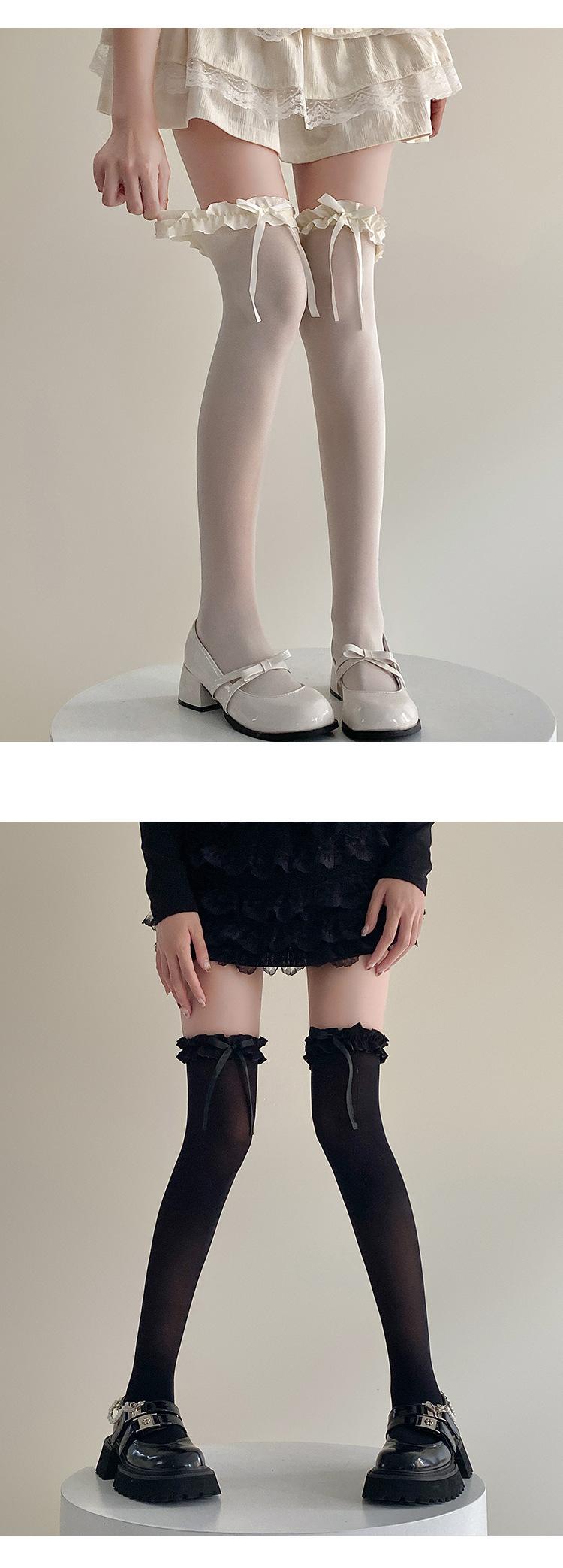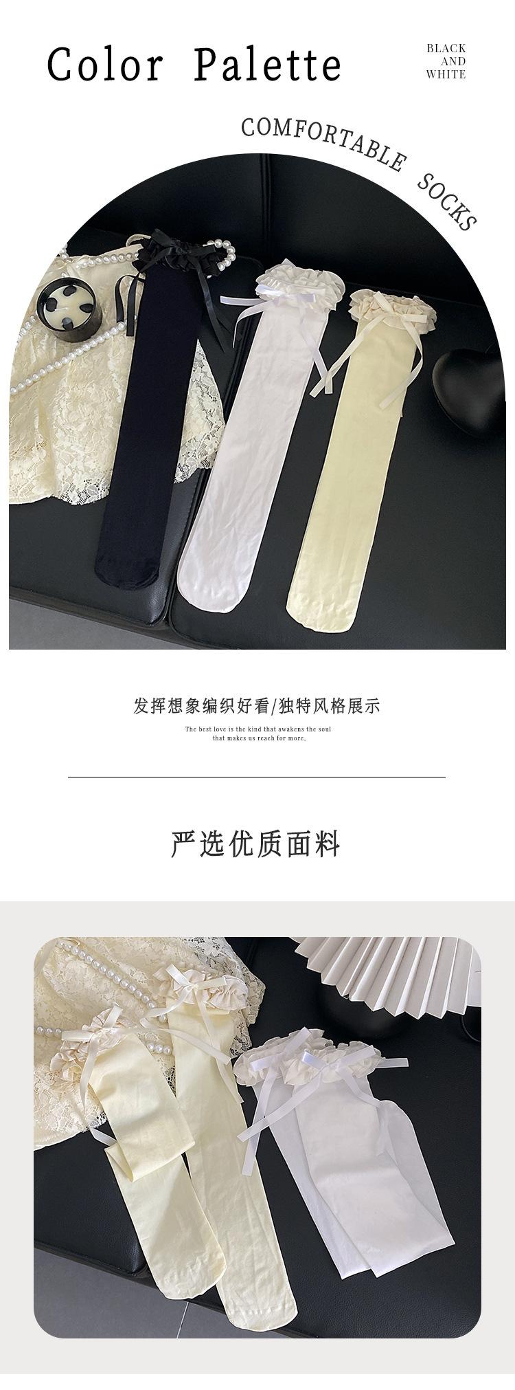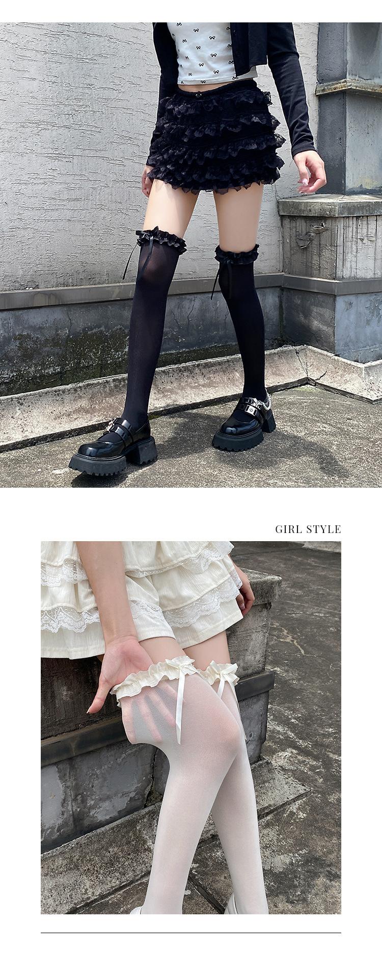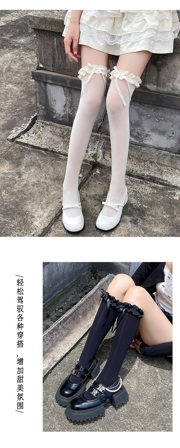 Laço Branco Sobre o Joelho Feminino Primavera e Verão Renda Fina Lolita Tubo Longo Renda Leite Branco Ballet Estilo Coxa Meias