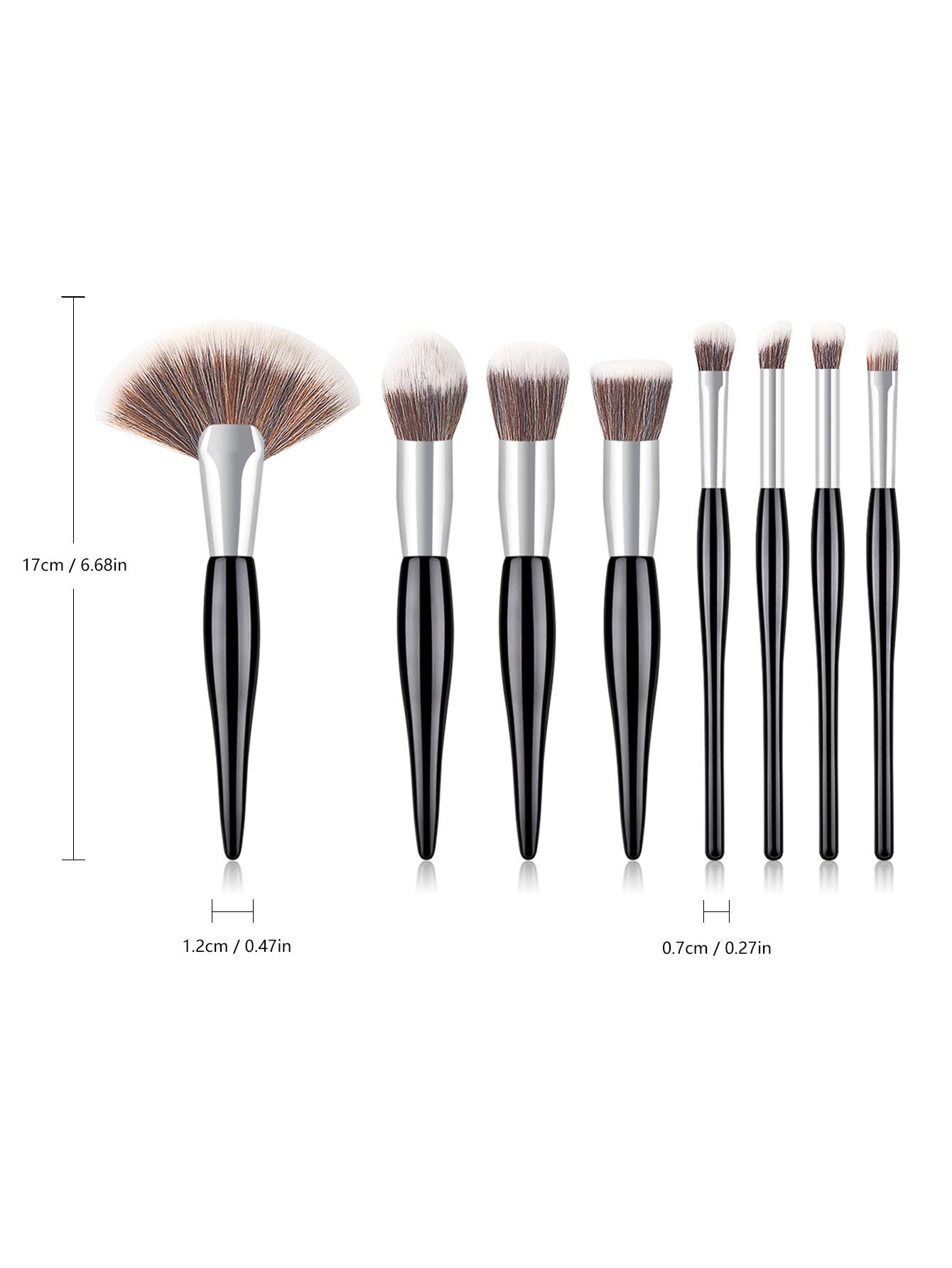 | 8 pincéis de maquiagem profissionais de venda internacional de novos designs pretos | 8 peças-Barriga de grávida-Preto-Forma de leque | YF070106 | alto | OPP | Cabo de madeira/tubo de alumínio/lã de nylon | 17*11*1,6 | 102 |
