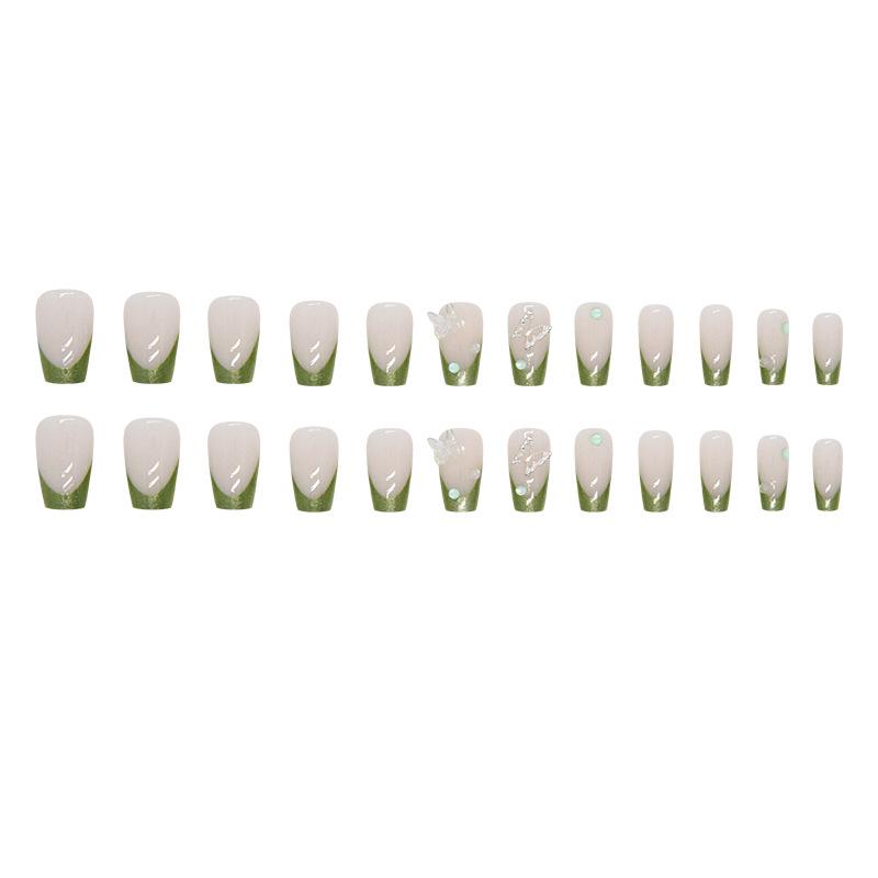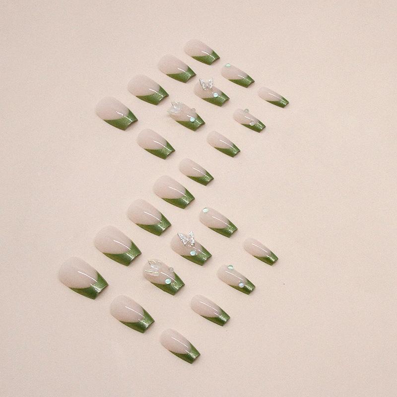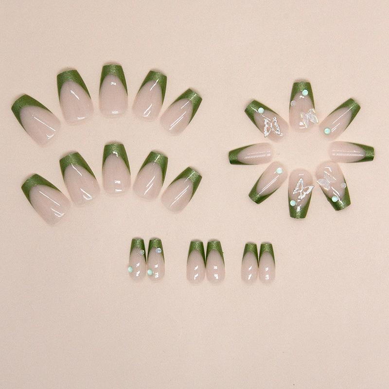 Flash simples Aurora manicure francesa europeia e americana balé curto diamante verde usar unhas terminadas unhas postiças