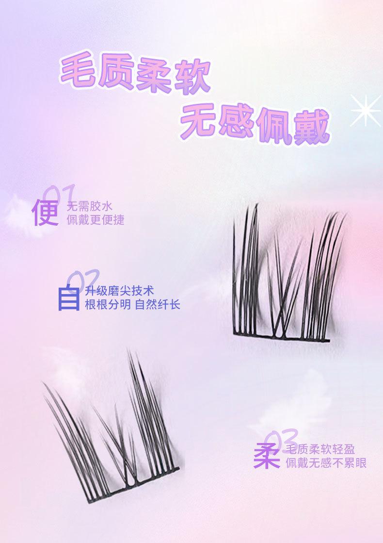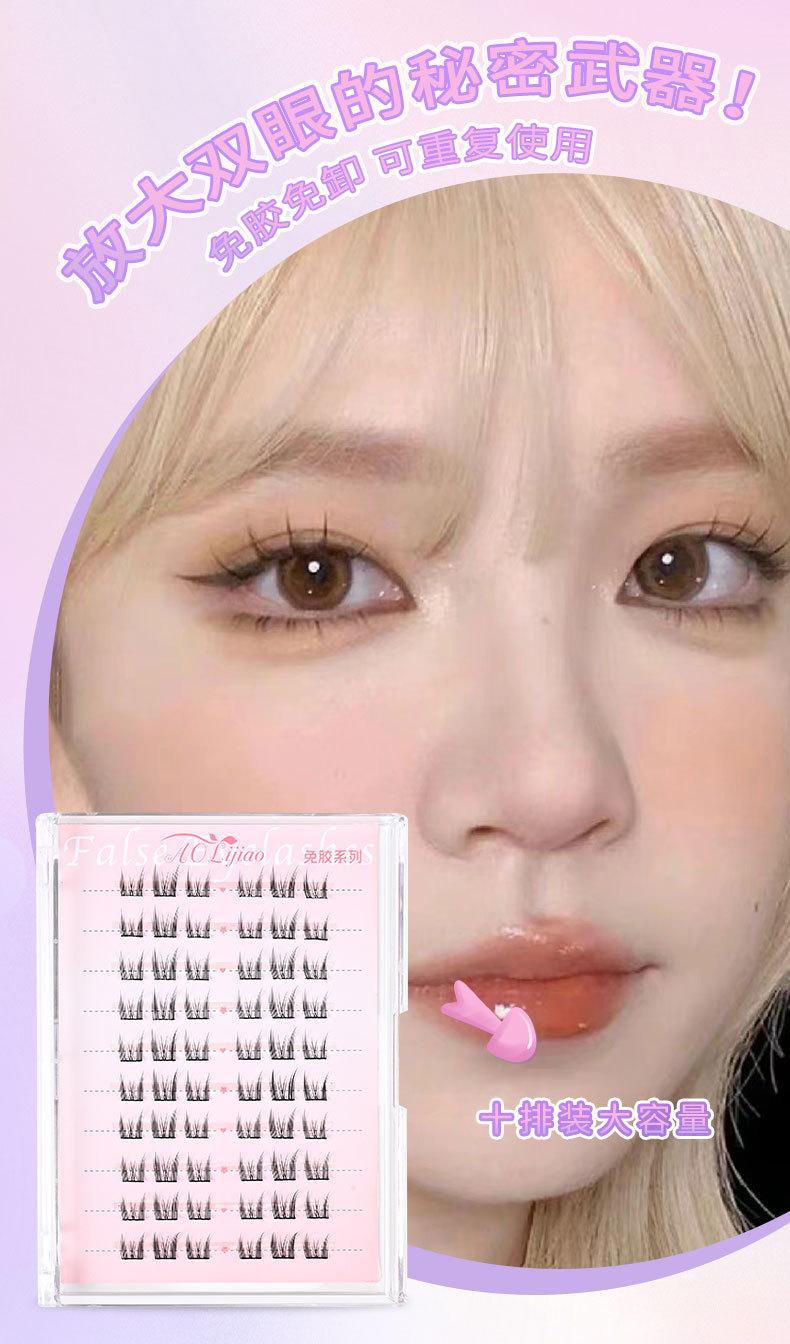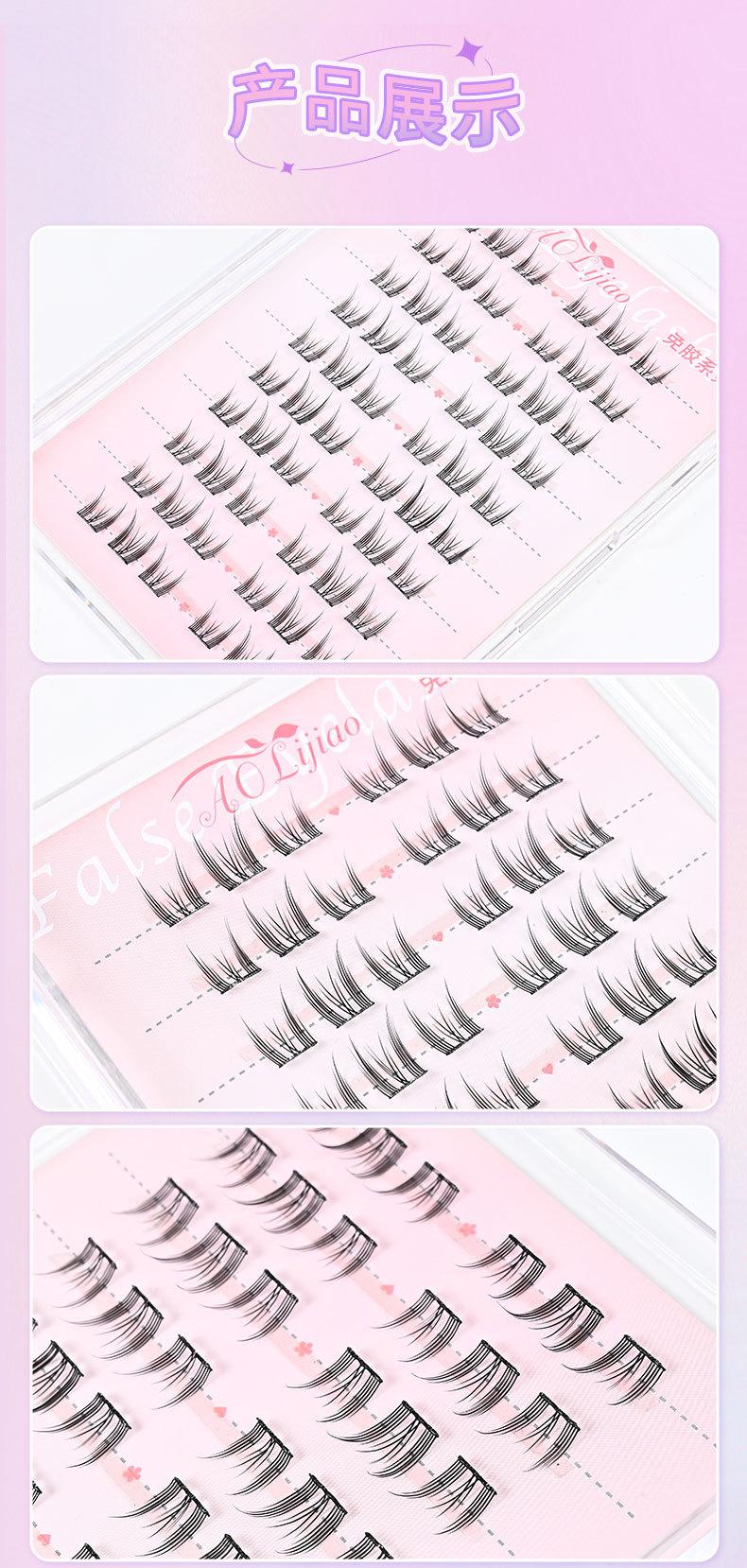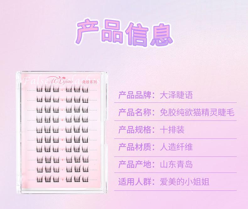 Compre Cílios Postiços de Gato Elfo Desejo Puro Sem Cola Cuidadosamente Selecionados Dez Fileiras com Hastes Pretas e Espessura Segmentada Plana Sem Cola e Leves no atacado no Joom.pro