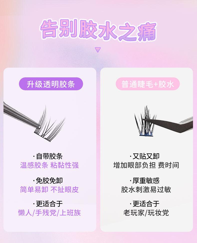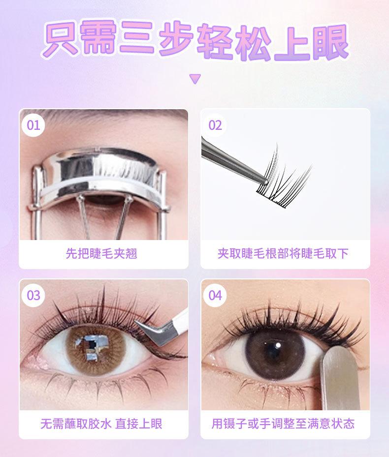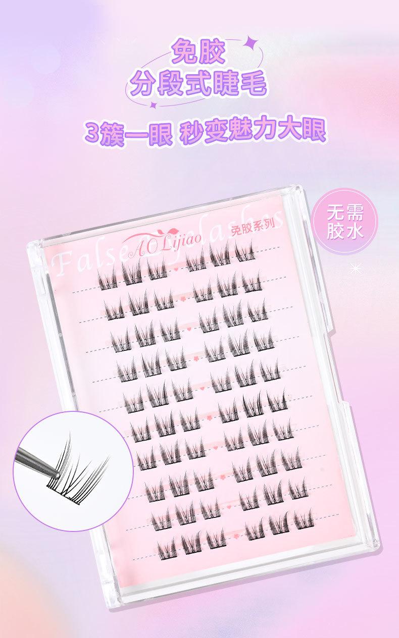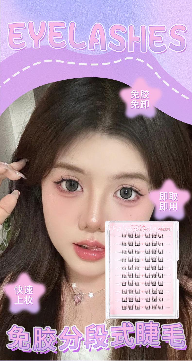 Compre Cílios Postiços de Gato Elfo Desejo Puro Sem Cola Cuidadosamente Selecionados Dez Fileiras com Hastes Pretas e Espessura Segmentada Plana Sem Cola e Leves no atacado no Joom.pro