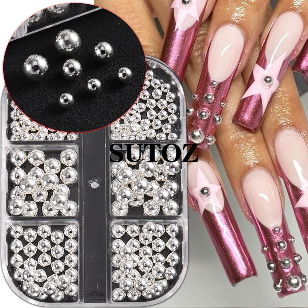 Compre 2024 Transfronteiriço Novo Nail Art Jóias Simples prata Caviar Nail Jóias Nail Art Pequena Bola de Aço no atacado no Joom.pro