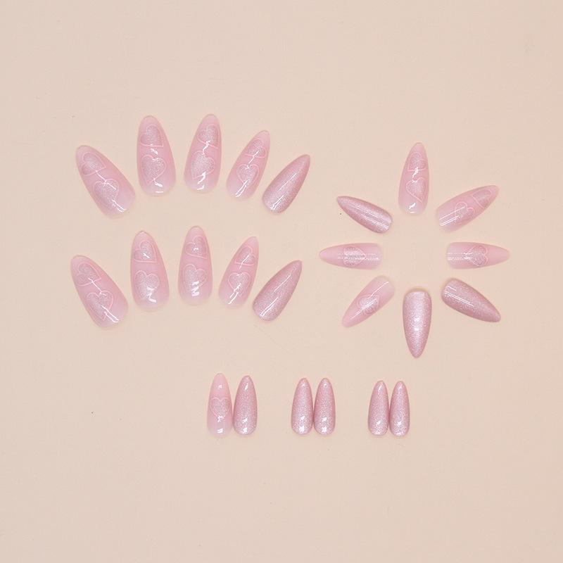 Olho de gato francês usando armadura Comércio Exterior Mancha de unha falsa Médio longo europeu e americano Amêndoa Patch de unha 24 peças