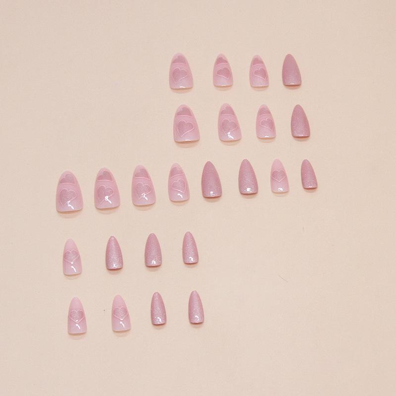 Compre Olho de gato francês usando armadura Comércio Exterior Mancha de unha falsa Médio longo europeu e americano Amêndoa Patch de unha 24 peças no atacado no Joom.pro