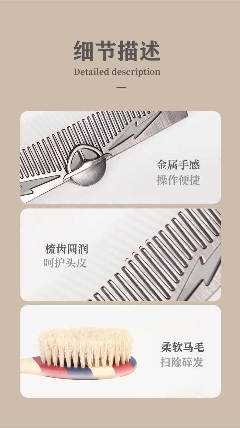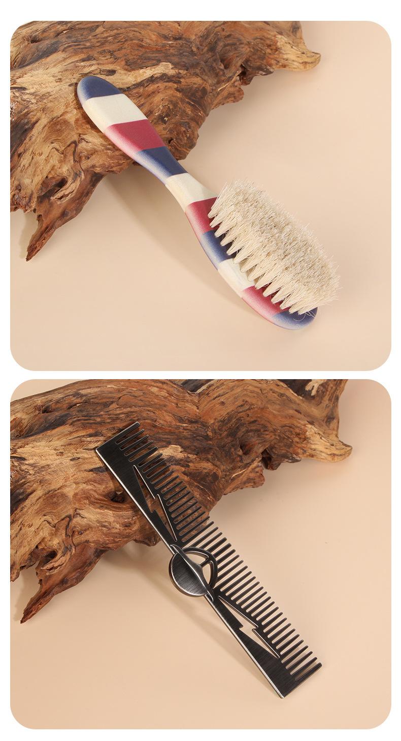 Em estoque Terno de estilo masculino Cabeça de óleo de liga de zinco pente cabelo de cavalo barba escova listrada cabeça de óleo escova quebrada escova de limpeza de cabelo