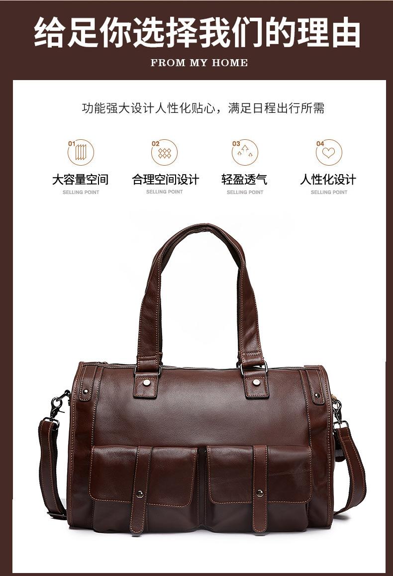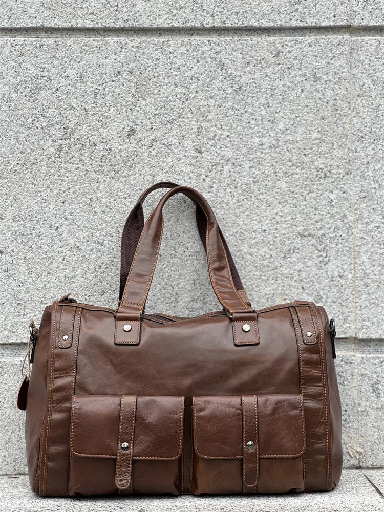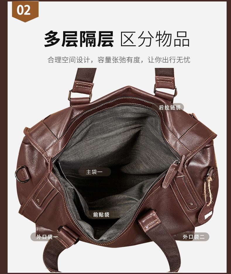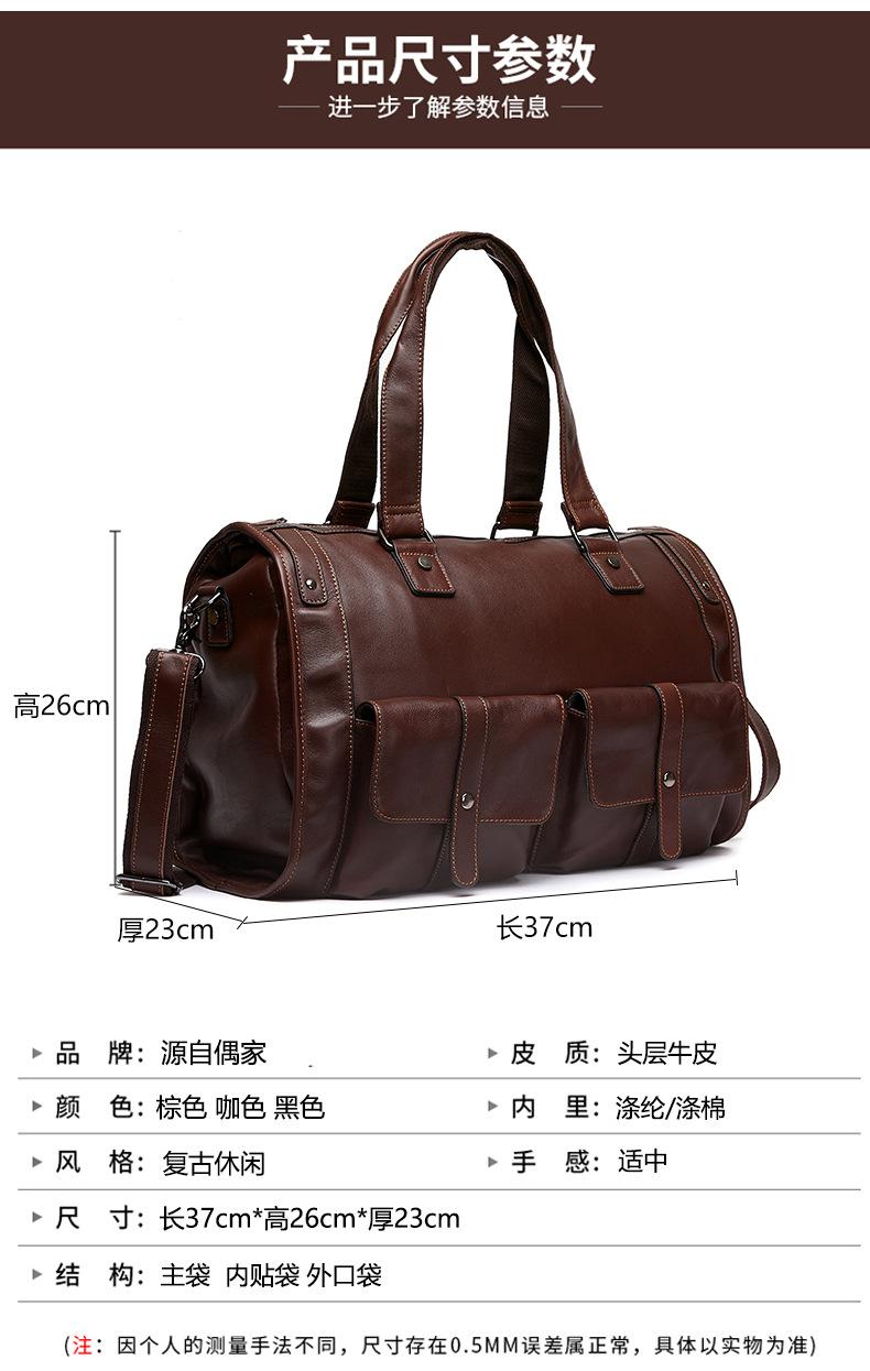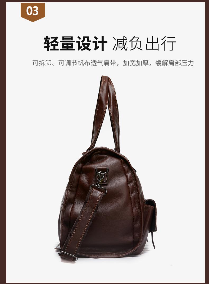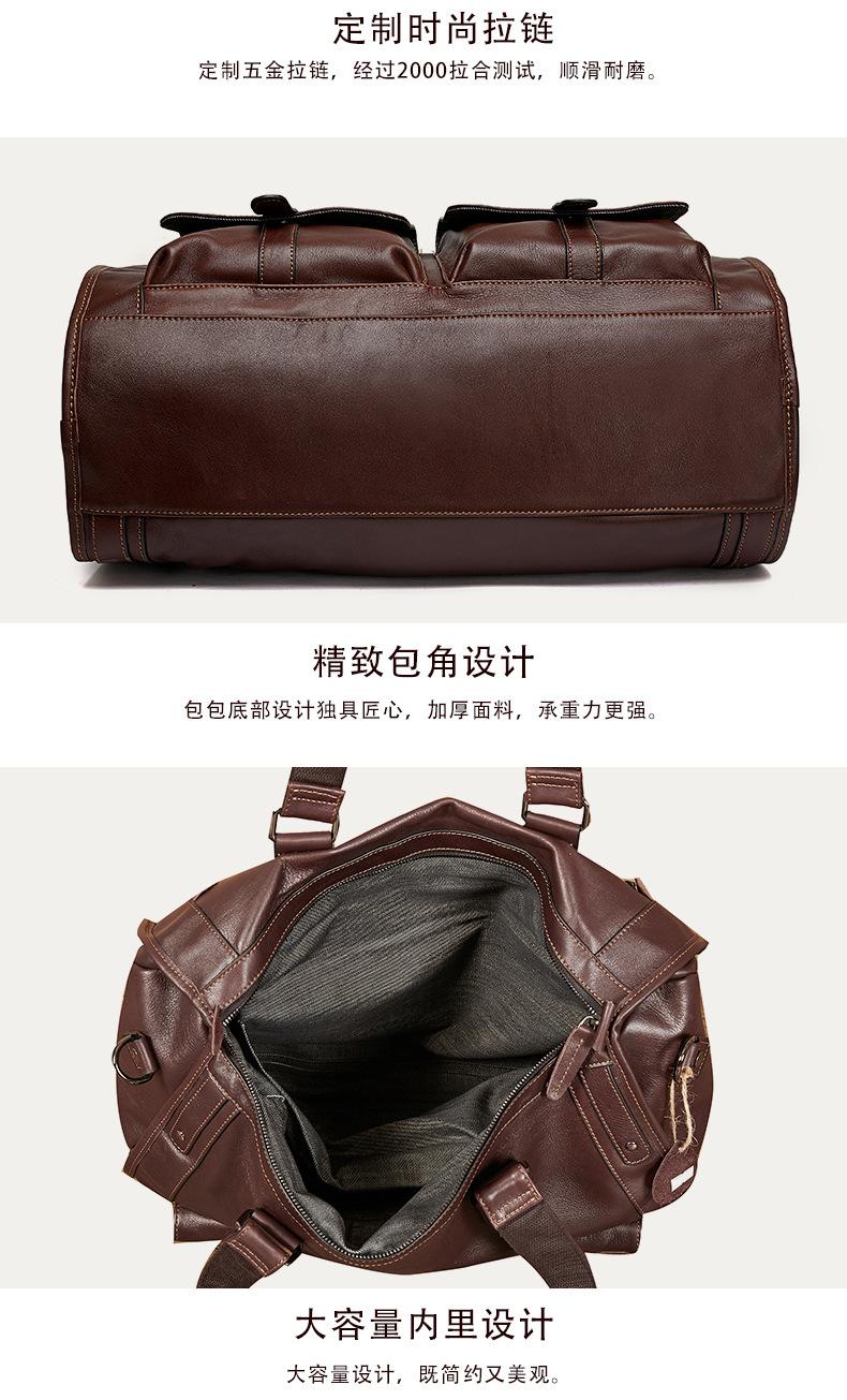 Bolsa de viagem de couro genuíno à prova d'água, grande capacidade, couro de vaca, armazenamento, bolsa de ombro único, horizontal, dobrável, portátil, bolsa de viagem de negócios