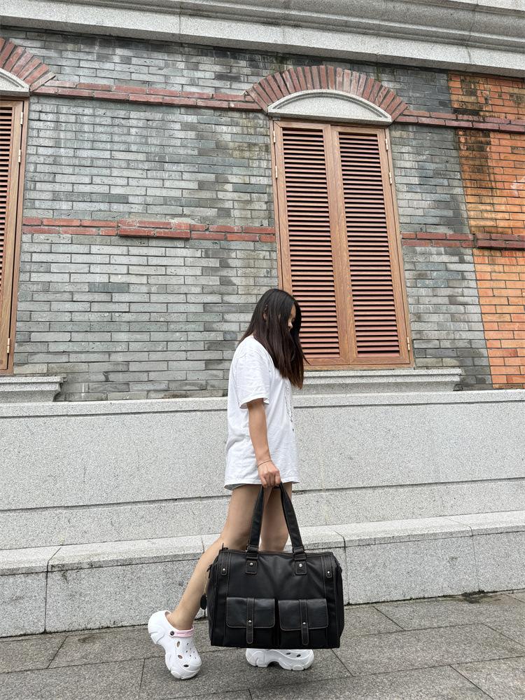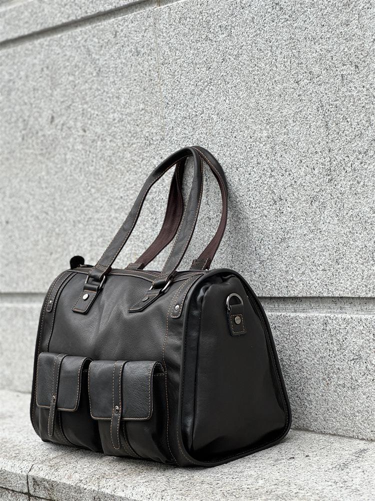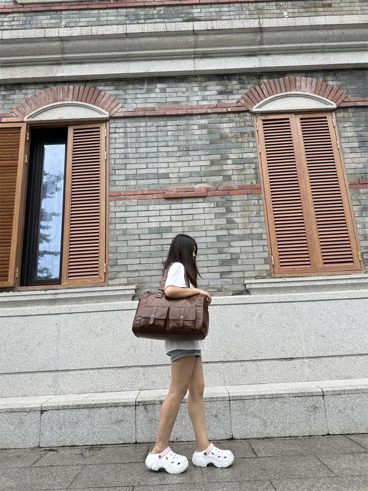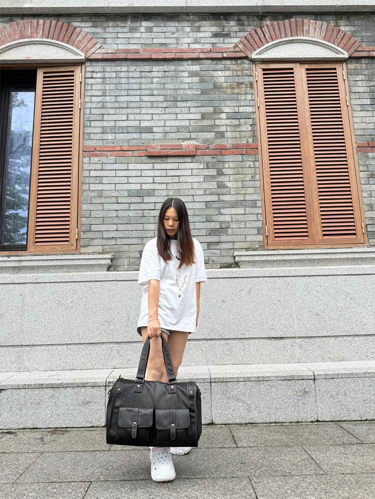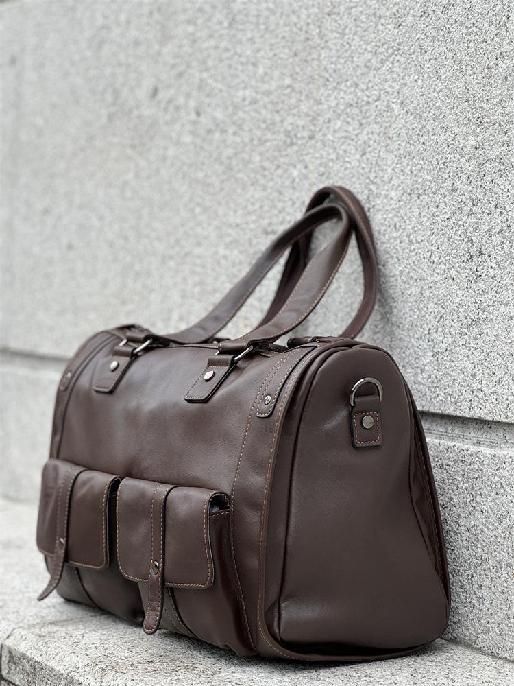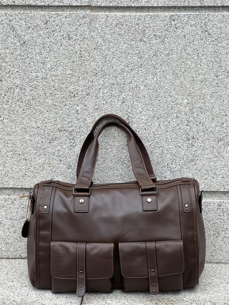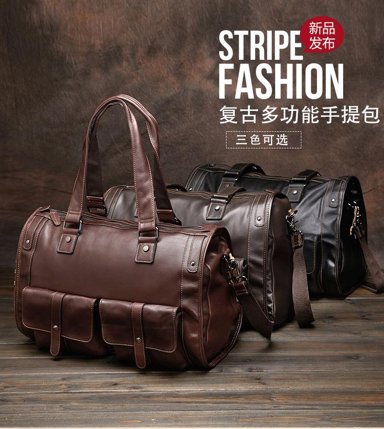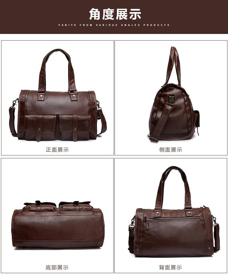 Bolsa de viagem de couro genuíno à prova d'água, grande capacidade, couro de vaca, armazenamento, bolsa de ombro único, horizontal, dobrável, portátil, bolsa de viagem de negócios