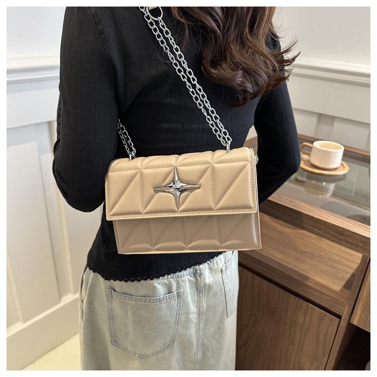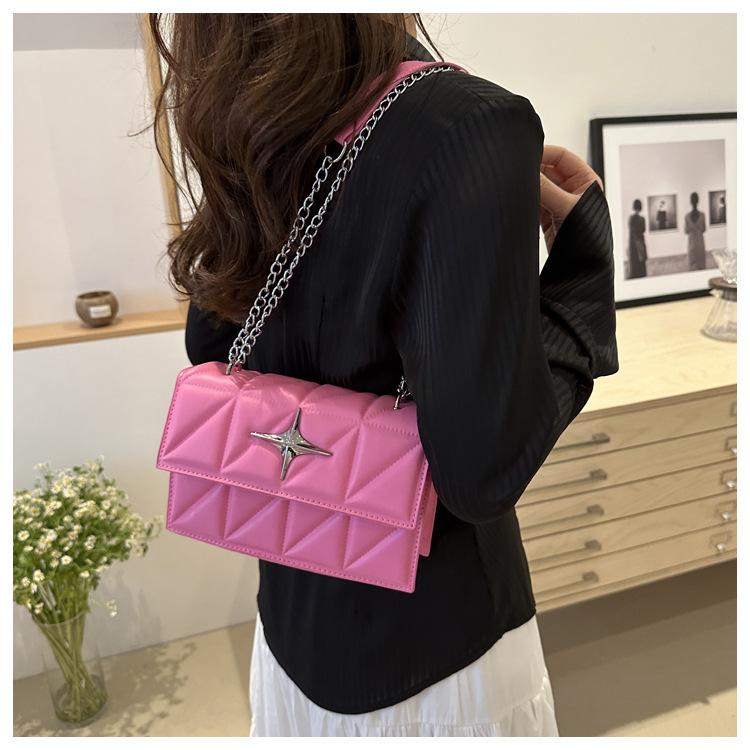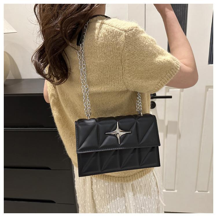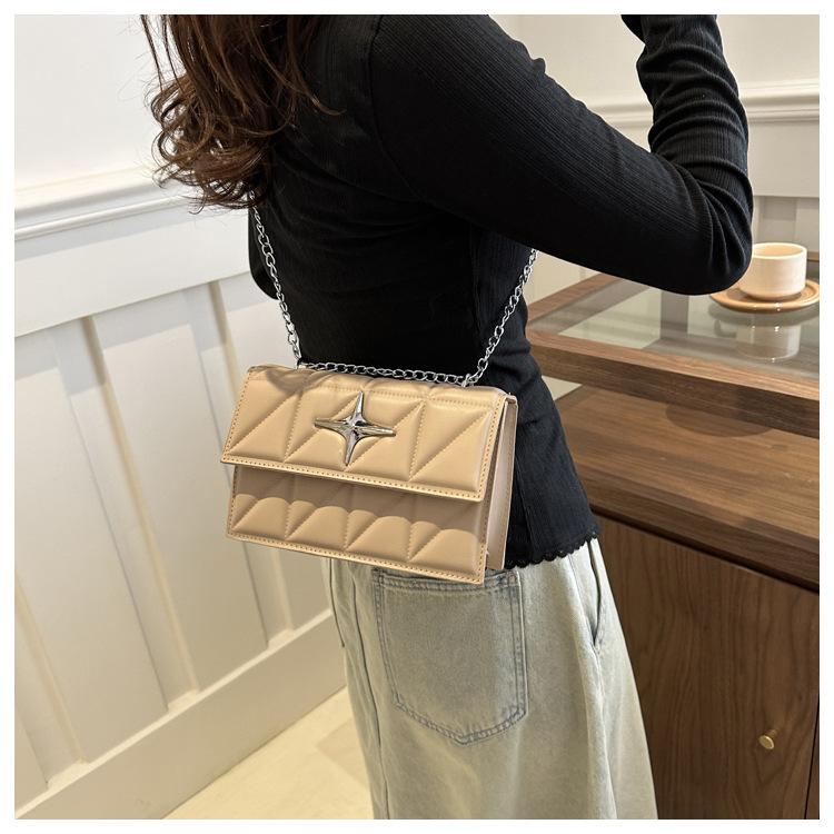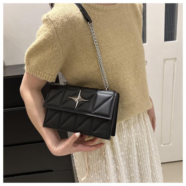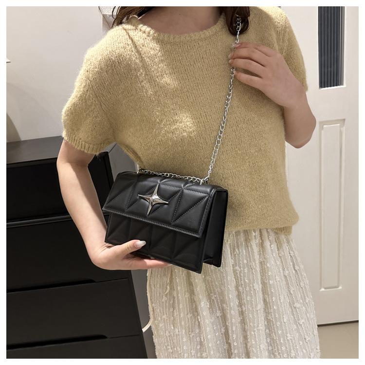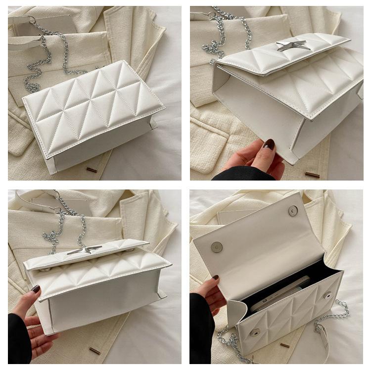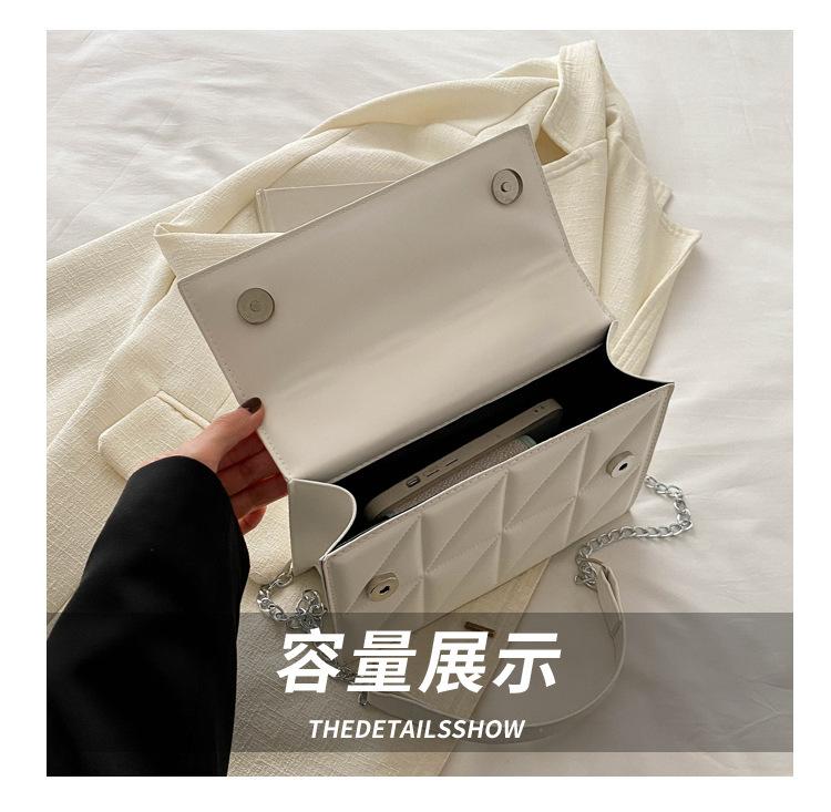 Bolsa Pequena 2024 Nova Moda Estilo Coreano Estilo Ocidental Rhombic Chain Bordado Linha Pequena Quadrada Bolsa Cor Sólida Simples Crossbody Shoulder Bag