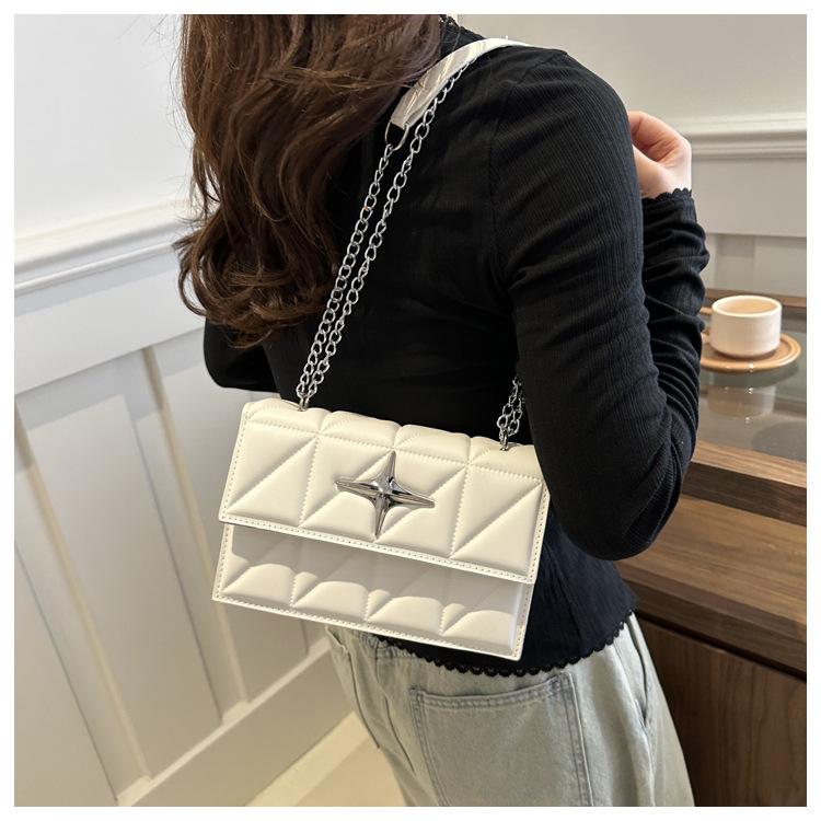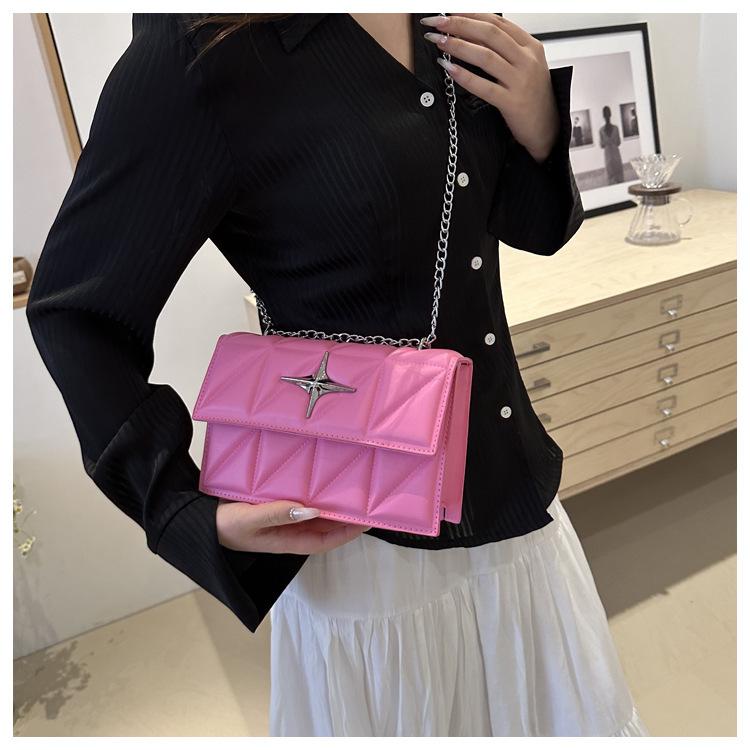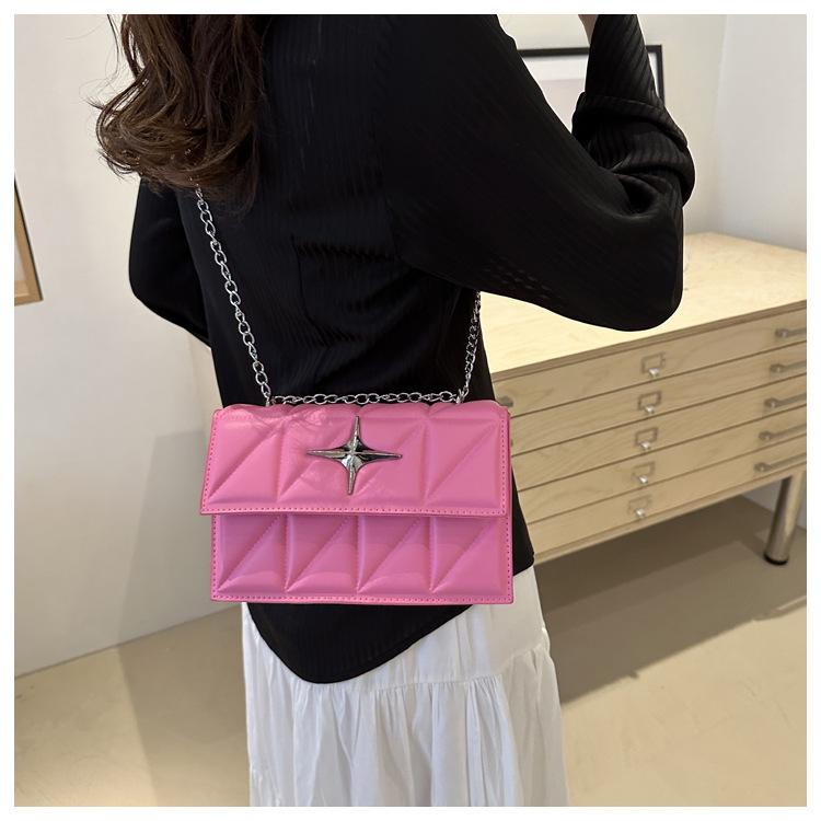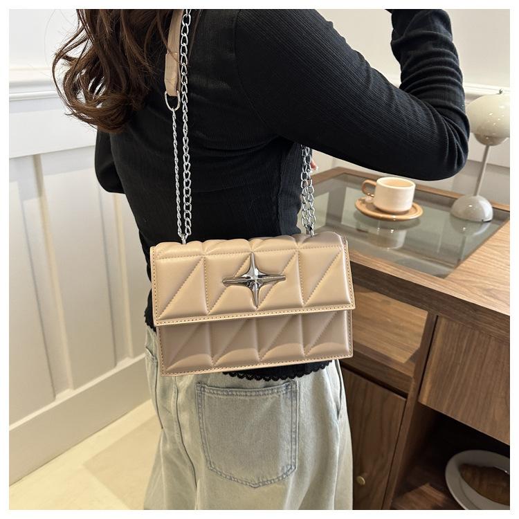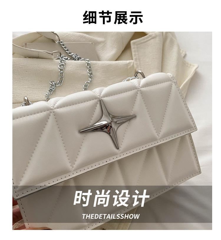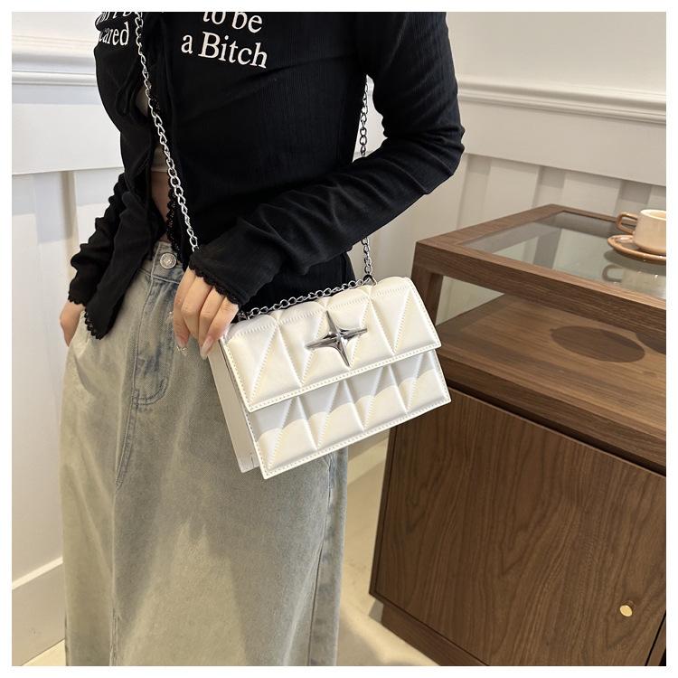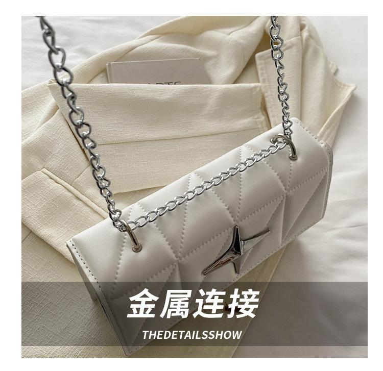 Bolsa Pequena 2024 Nova Moda Estilo Coreano Estilo Ocidental Rhombic Chain Bordado Linha Pequena Quadrada Bolsa Cor Sólida Simples Crossbody Shoulder Bag